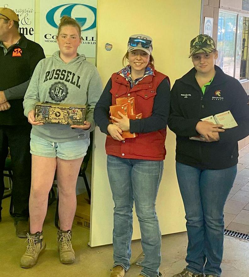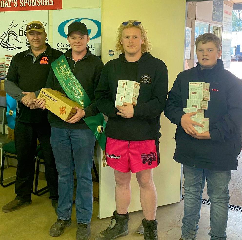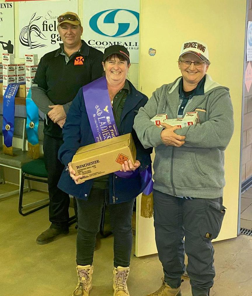 Rohan and Sonja Morgan from MK1 developments, who supplied ammunition as prizes for the placegetters. Other sponsors were The Coomealla Club, which provided the sashes for 1st prize and High Gun, and Martin Colombo from Colombo Shooting and Neil Stephens for sponsoring the juniors. Red Cliffs Butchery and Gill Estate Wines kindly provided prizes for the raffles.