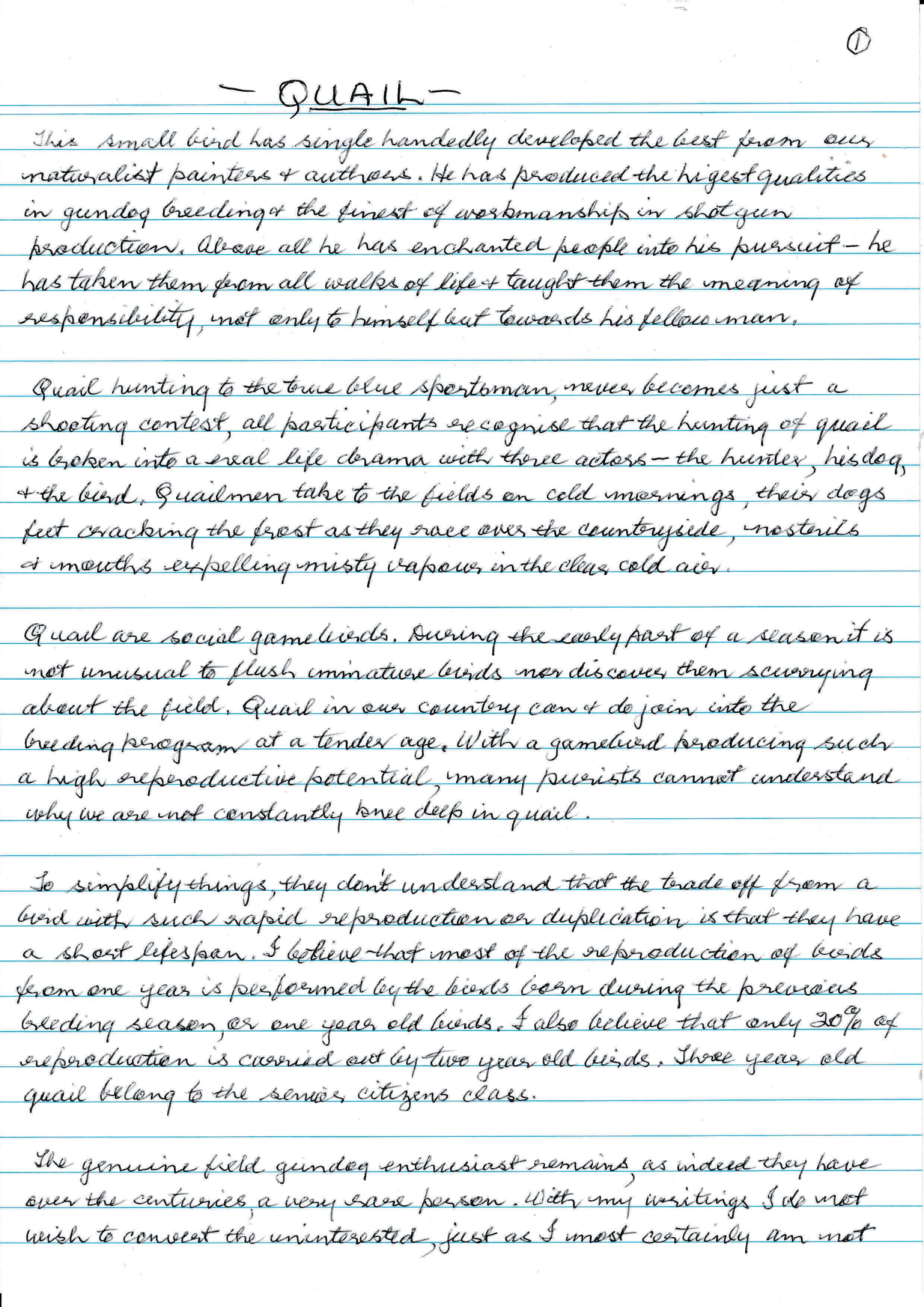 HUNTING: QUAIL PROVE EXCELLENT QUARRY