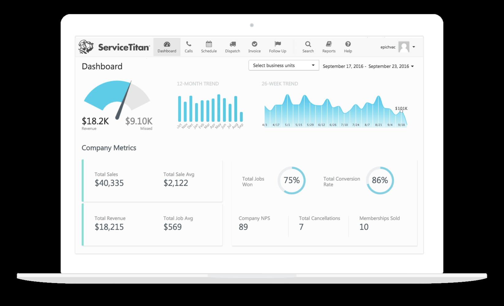 Another leading alternative is ServiceTitan. It offers the same three critical field service management components, including scheduling, work order management, and invoicing, along with some unique features such as phone call monitoring to track booking conversions and reviewing missed business opportunities to train service providers for better on-call customer service.