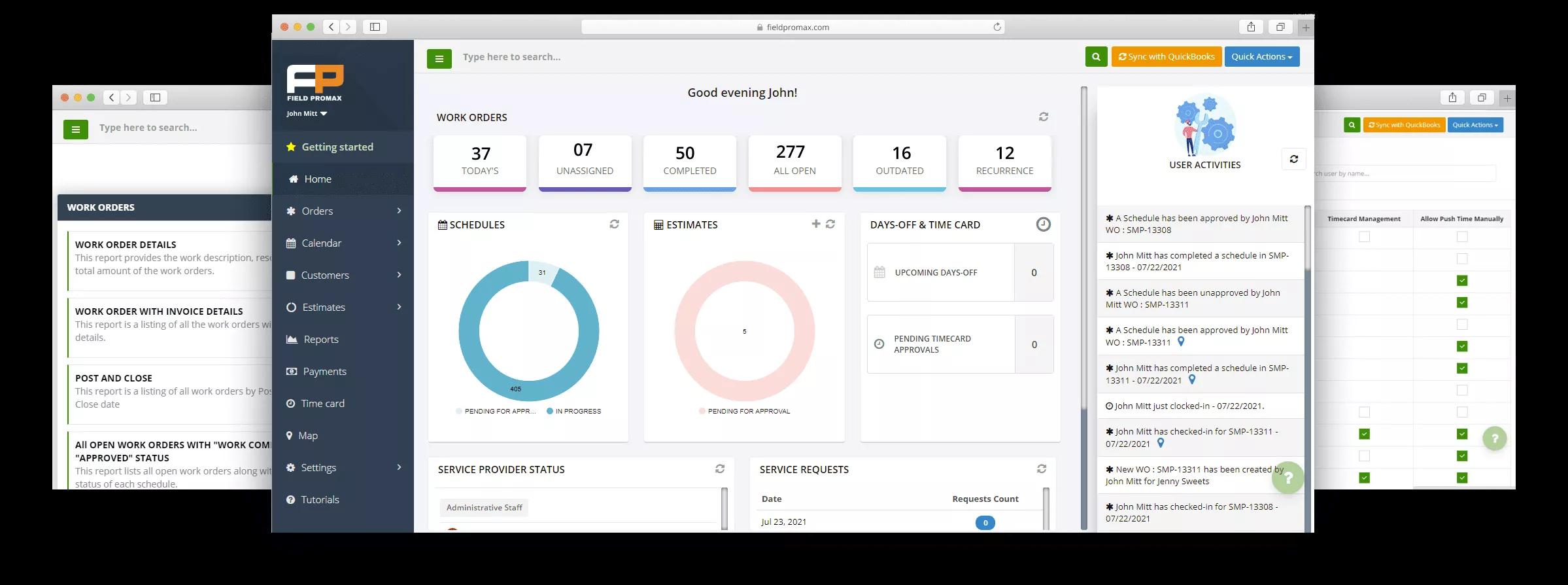It also comes with an integrated GPS-powered mobile app that allows you to track your technicians’ locations in real-time, monitor work progress, and view the entire schedule in different modes (daily, weekly, monthly, as well as individual schedules of technicians).