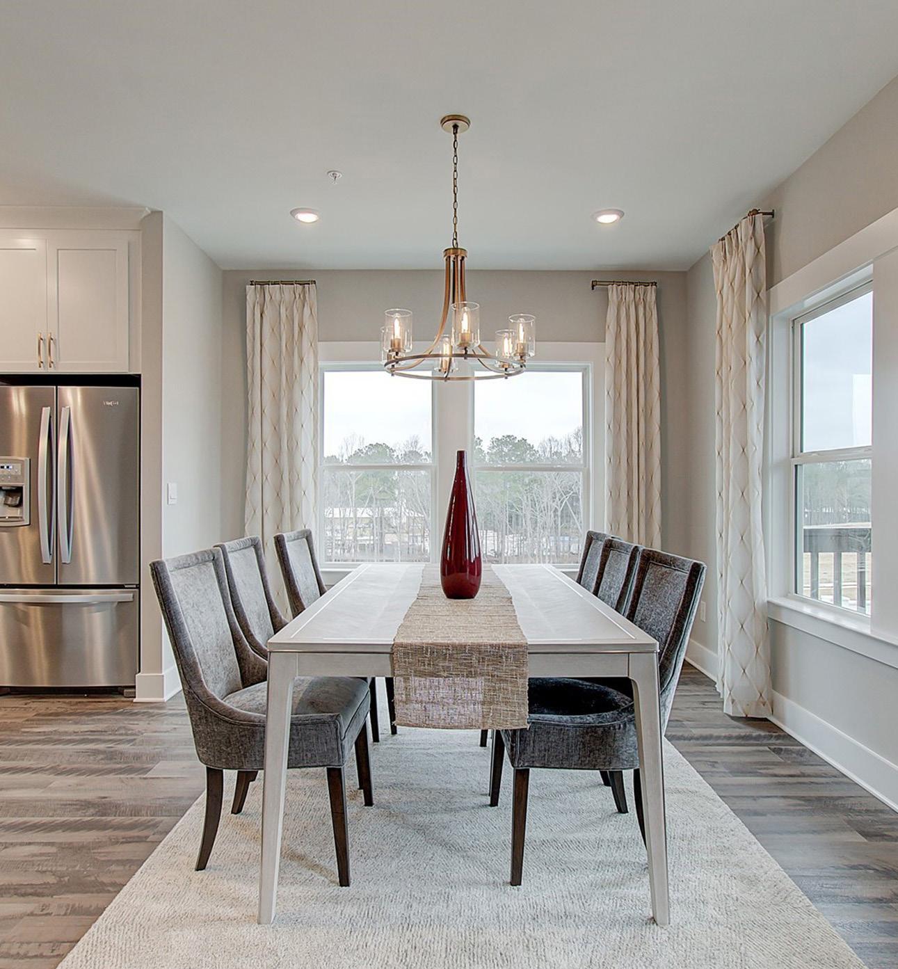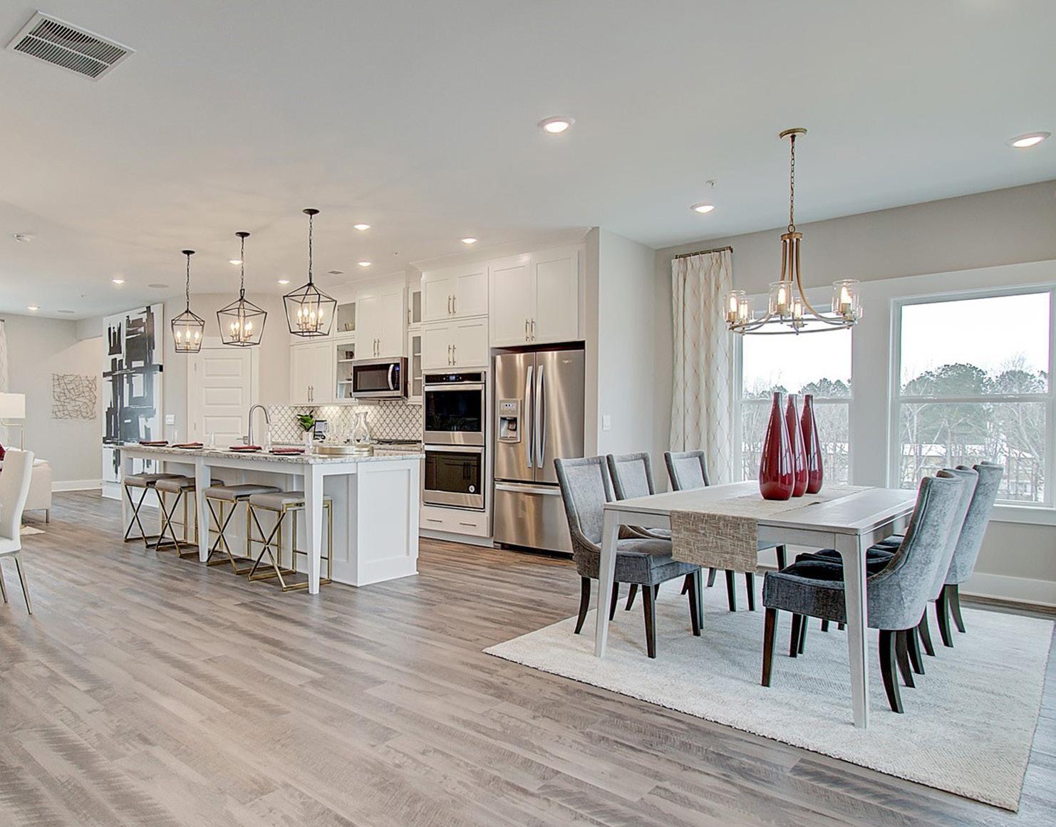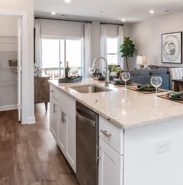 The three-story townhomes of Ridgewalk Landing reflect an urban farmhouse design style. They offer large kitchen islands, spacious great rooms, 3-4 bedrooms, and up to 3.5 baths.