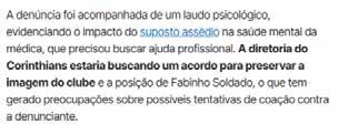Abafou o caso de assédio contra a Dra. Ana Carolina, então chefe do departamento médico do futebol profissional, e depois a demitiu.