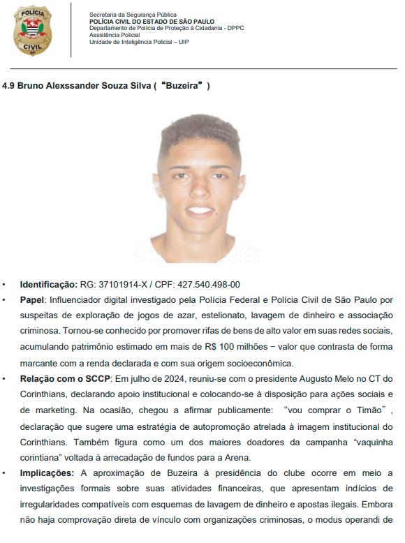 O meliante Ninja, chefe de gabinete, motorista, segurança e sócio de Augusto Melo, será e já foi fichado por violência doméstica. Também está fichado pela polícia no caso Vaidebet e deverá ser investigado 36.
