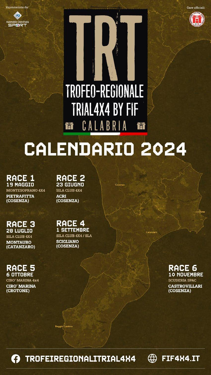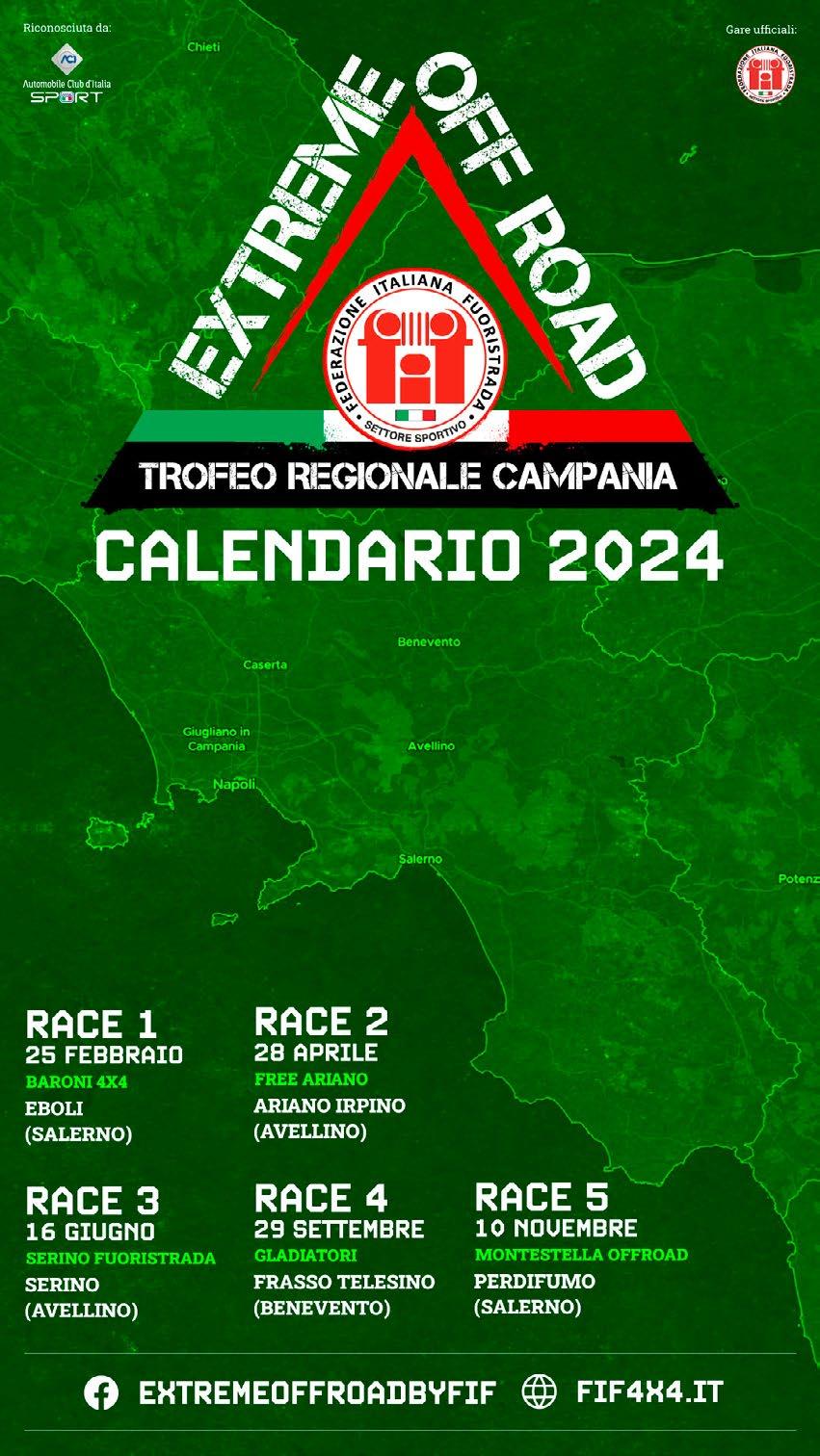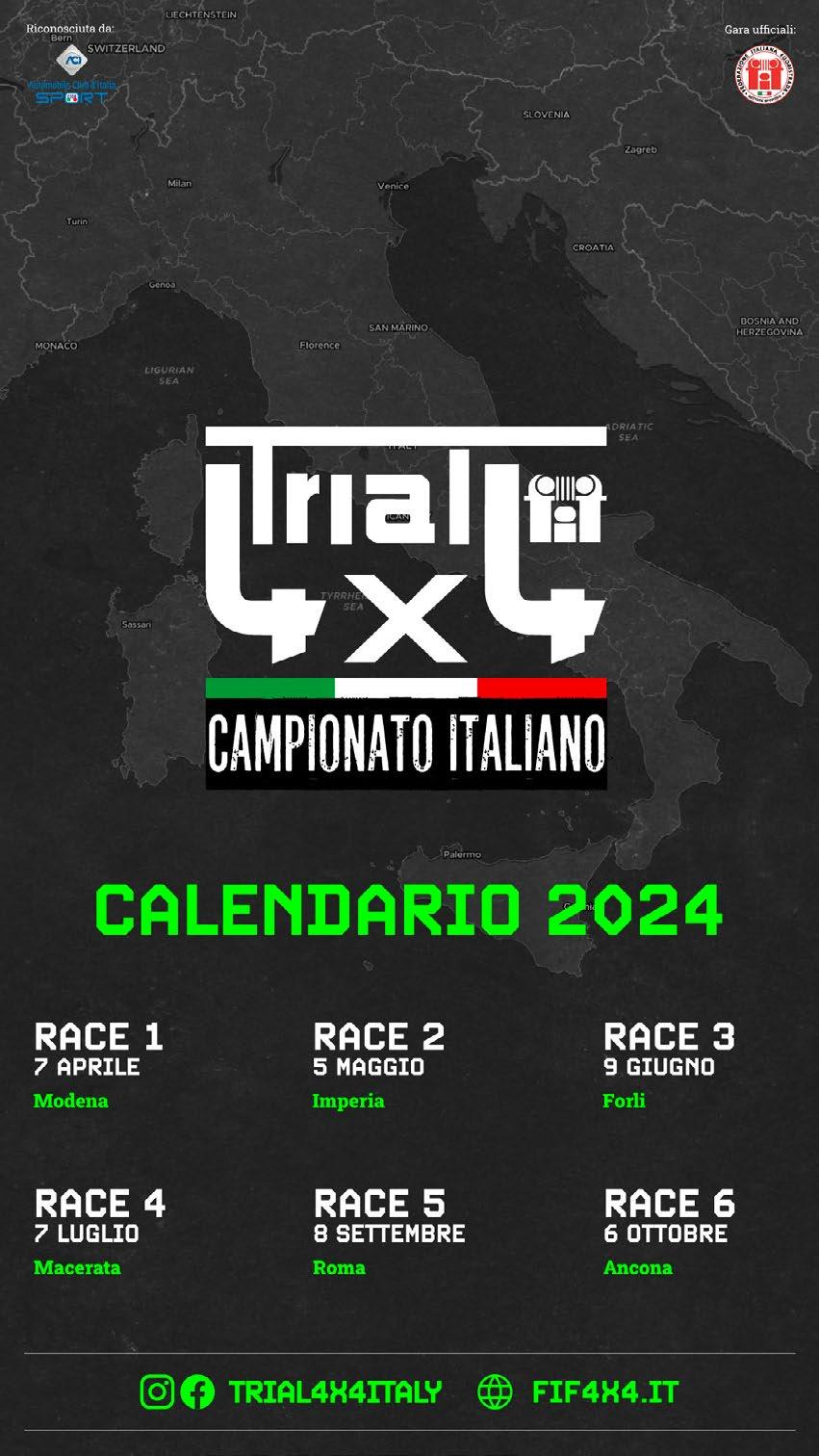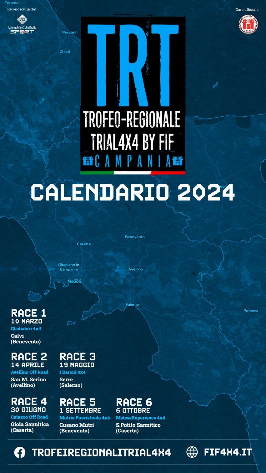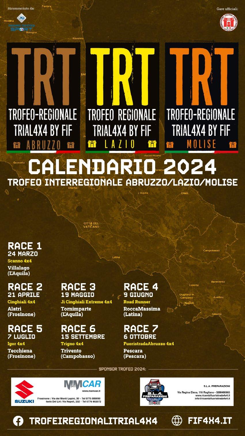 febbraio Lazio Dimensione Fuoristrada 16-17 marzo Lazio Roar Roma 14 aprile Calabria Tuareg Team Off Road 28 aprile Campania Matese Experience 4x4 18 maggio Sardegna Sardinia Extreme 4x4 16 giugno Basilicata Team Potenza Off Road 22 settembre Lazio Aquilotti - IGOR