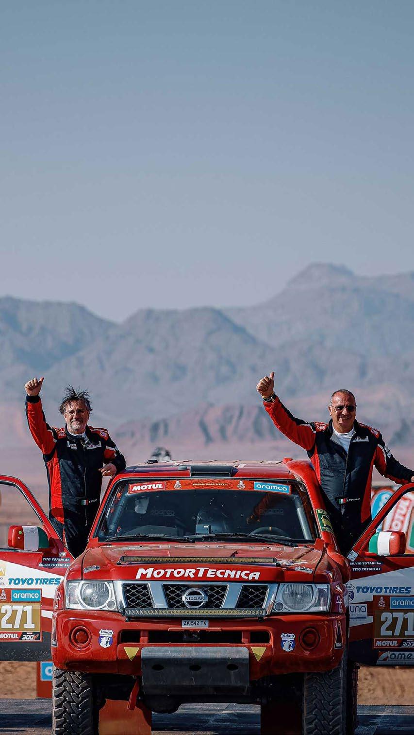 Per Silvio e Tito si è trattato della quarta partecipazione alla Dakar, la seconda ambientata in Arabia Saudita, mentre le prime due le avevano corse in Sud America. I fratelli aquilani hanno corso con la stessa vettura utilizzata nell’edizione 2022, un Nissan Patrol GR Y61 4.8 a benzina da 320 cavalli, ribattezzato “Tanit”, praticamente l’unico veicolo T1 in gara con struttura tradizionale (telaio a longheroni e ponti rigidi). Erano in lizza anche altri due fuoristrada tradizionali, iscritti però nella categoria policarburanti. Per l’assistenza i Totani si sono appoggiati al MotorTecnica Racing Team di Parma.