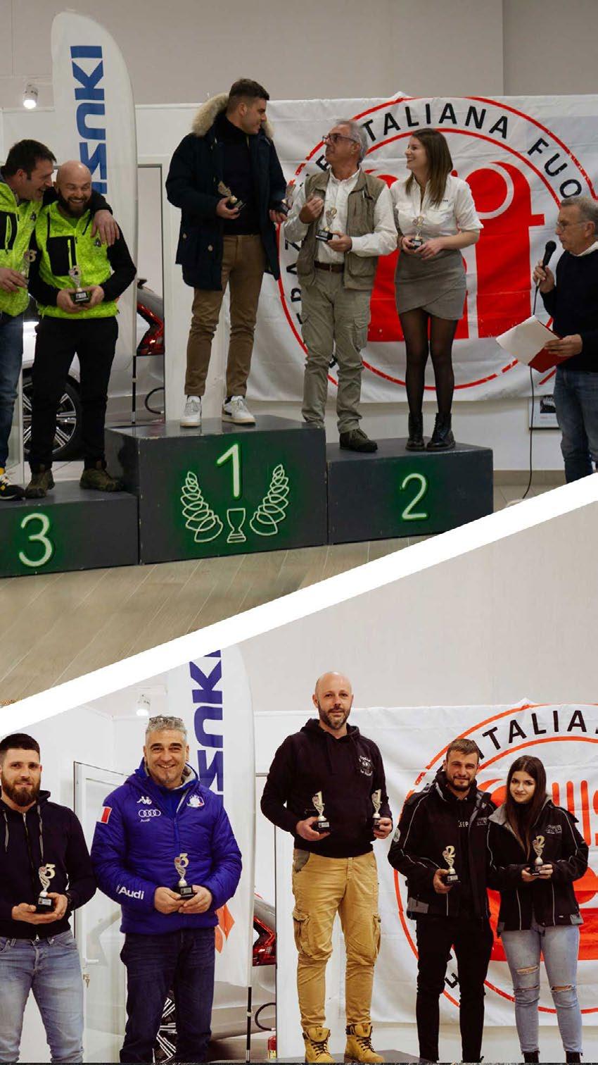 Tra l’entusiasmo, gli applausi e l’euforia dei presenti, alle ore 19 è iniziata la premiazione con la consegna dei premi ai primi tre equipaggi della categoria dei Verdi. Al terzo posto Fiorenzo Bragalone del club Cinghiali 4x4 di Alatri. Al secondo posto Mike Incitti e Massimiliano Grascia del club Aquilotti 4x4. Al primo posto l’equipaggio del club Cinghiali 4x4 formato da Dino Bragalone e Roberto De Santis, che ha bissato il successo dell’anno precedente.
