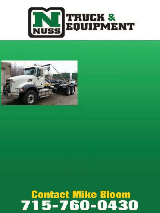 1-800-220-6029 www.thehauler.com 73 Mark Powell: Used Sales Manager After Hrs. PH: 336-689-4879 FAX: 336-869-9979 www.cesrefuse.com • New Units In Stock • Toll Free (800) 239-7796 No One Beats Our Quality ReconditioningCompletely Gone Through, DOT inspected and Route Ready. • 306 Pineview Dr. • Kernersville, NC 27284 • DISTRIBUTORS FOR: FINANCING AVAILABLE To Qualified Buyers On New & Used Equipment MORE UNITS IN STOCK! CES INC. THE LEADER IN QUALITY NEW & USED EQUIPMENT CALL TODAY!! CES INC CES INC. THE LEADER IN QUALITY NEW & USED EQUIPMENT CALL TODAY!! CES INC 2010 VOLVO VHD,13L Eng 425 HP, 115,000 Miles, 4500 6 Spd World Allison Auto, 46 Rears, T-Ride Susp, New Brakes & Drums, New Tires, New White Paint, 25 Yd RL26H High Compaction Rear Load Pac-Mac Body. $99,900 $79,900 2007 STERLING, Cat Eng. 300HP 160K, 3500-6 spd Allison auto. 40RA/16 FA, new 315/800R22.5 front tires 11R22.5 rear tires 50% or better, AM/FM, A/C, new brakes, drums, eject cylinder, cruise w/Heil 5000-25 yd body dual tuck away cart tippers. $69,900 NewWay 31 yard sidewinders sideload, camera systems, in shop now for complete reconditioning, new paint , DOT inspected and route ready, available in about 45 days city units. $119,900.00 EACH JUST IN! 2013 MACK GU813, MP7-345HP, 4500RDS Allison automatic, 96,657 miles, 8,724 hours, 18,000 lb front, 44,000 lb rear camelback, AM/FM, A/C, cruise, eng brake,. with Pak Mor 30 yard body dual cart tippers.$94,900 COMING FEBRUARY! 3 -2020 MACK LR64R'S MP7-355 HP, 4500-6 spd world Allison transmissions, 50,000 miles 4,500 hours approximately, 46 rears 20 front axles, AM/FM, A/C, cruise eng brakes, dual steer, with Heil DP28 yard python side loaders, smart lights, 3rd eye 3 camera systems, aluminum wheels 315/80R22.5 tires municipal turn ins $249,900.00 each Big Horsepower 12 & 13 Liter 405 HP-455 HP’s, Automatic Transmissions, 60,000 Lb Galbreath Hoists, 48” Toolboxes, Full Fenders, Pioneer RP4500SARG Strong Arm Tarp Systems with Integrated Valve Bodies for Hoist & Tarp, Inside Air Controls, Custom Mounts with Alcoa Huck Bolts & Collar Mounts, Work Lights with Guard on Bumper and Tarp Gantry. CALL FOR PRICING 2023 MACK, PETERBILT, FREIGHTLINER & KENWORTH 880 ROLL-OFFS CHASSIS ON ORDER FOR MID 2023 DELIVERY SOLD SOLD SOLD 20 Cubic Yard, Cart Tipper, light Package, Regen Valve, Safety Vision Monitor, Mounted on: 2023 Peterbuilt 520, Single Axel w/ Pusher, Paccar PX-9-360 / 1150 torque, Allison 3000, LH Steer Full Specs and Pricing Available Call or Text Todd Fredrickson 616.914.9131 todd@fredricksonsupply.com Please call 616.949.2385 for more information or to schedule a showing! New Leach Alpha III 2017 25 Yrd Loadmaster Excel S 2023 LABRIE 31YRD AUTOMIZER Crane Carrier Tandem Chassis, Perkins Tipper 3,518hrs – 29,212 miles New Tires! Ready to work. $119,500 + Tax Mac LR64R Dual Sit-Down Drive Right-Hand Cart Grabber 3,162miles – 303hrs CALL FOR PRICE