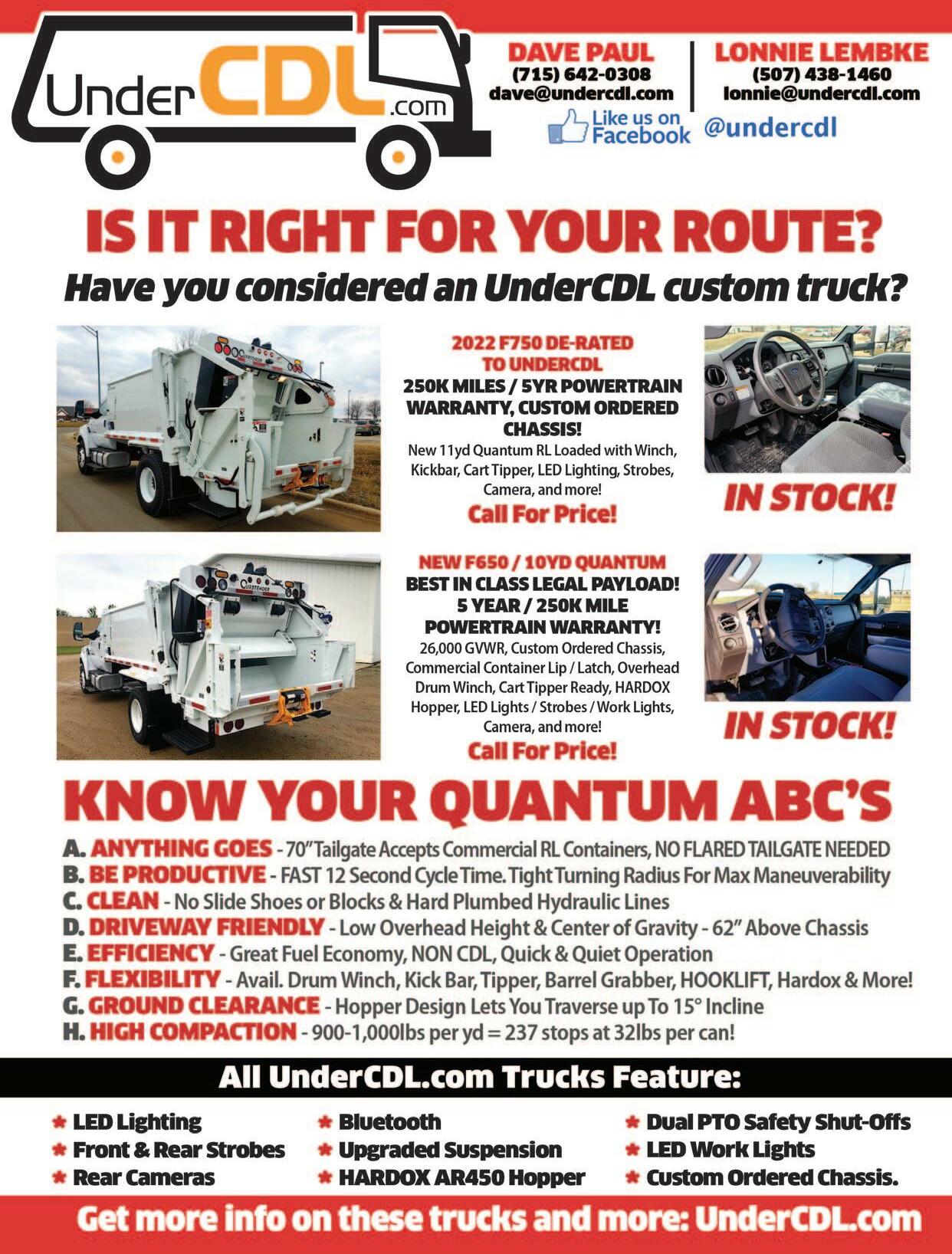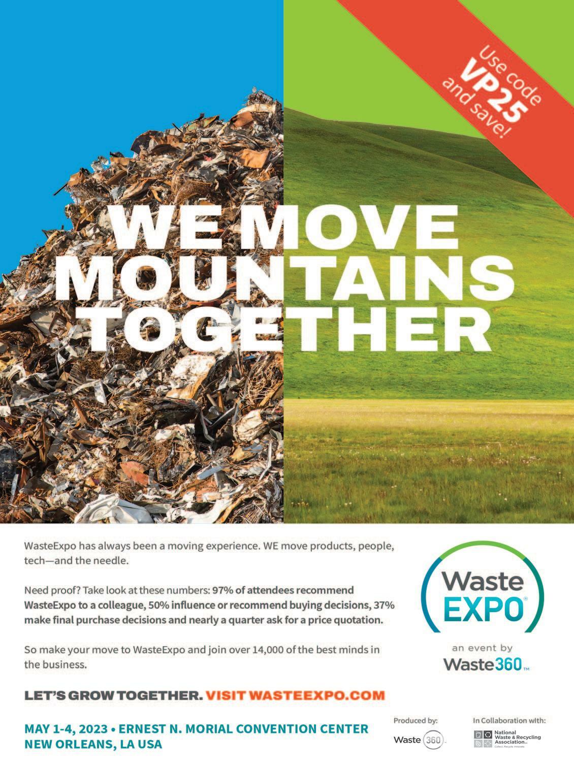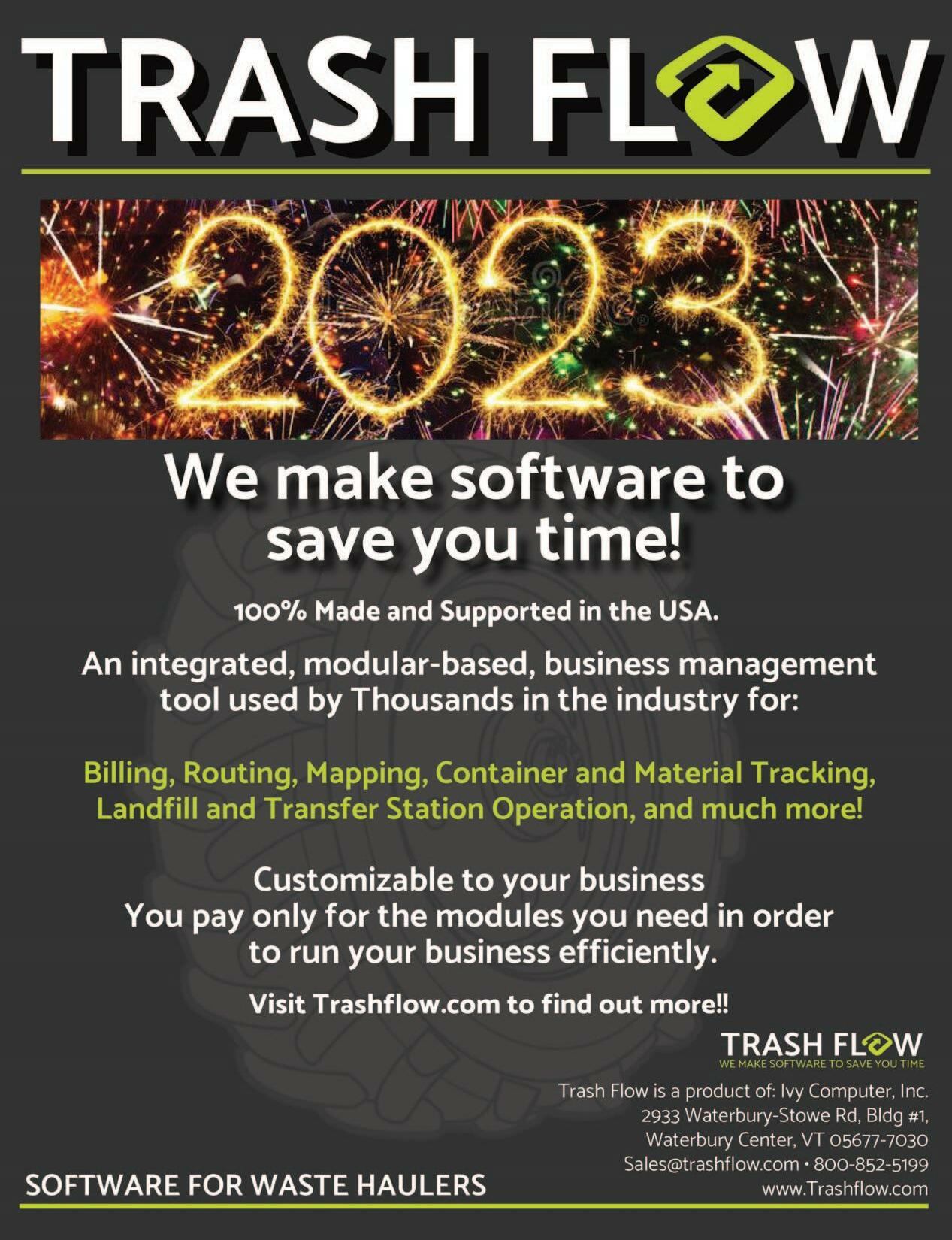 No Filler No Fuss - We Just Sell Your Stuff! HAULERmagazine www.thehauler.com #1 EQUIPMENT SOURCE FOR WASTE HAULERS the JANUARY 2023 CALL TODAY TO ASK ABOUT OUR REFURBISHED & ROUTE READY TRUCKS! 330-773-9300 PARRISTRUCKSALES.COM W/CUMMINS ENGINE 2011 MACK LEU W/25 YD HEIL MULTI PACK 330-773-9300 PARRISTRUCKSALES.COM HAPPY NEW YEAR!