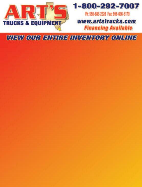 52 www.thehauler.com 1-800-220-6029 J&R ENVIRONMENTAL TRUCK SALES Call Josh Today For More Details 918-607-1006 Trucks Arriving Monthly-Please Call for Further Details 2016 KENWORTH WITH LABRIE SPRINTER CUMMINS ISX, ALLISON 4500 RDS, 66,000 GVW, APPROX. 67,000 MILES, GREAT SHAPE! PRICE $169,000 NEW 2023 PETERBILT 520 DUAL DRIVE WITH DUAL JOYSTICKS MX-11 ENGINE, ALLISON 4500 RDS, 66,000 GVW LABRIE AUTOMIZER RH WITH 31 YD CAPACITY CALL FOR PRICE COMING SOON 2023 KW T880, 66,000 GVW, Cummins ISX12 with Allison Transmission, Stellar SI160-174 Cable Hoist, Outside Rail, Forward Mount Cylinders, Handles up to 22’ containers, Poly Fenders, IIC Bumper, Toolbox, Pioneer Tarper. CALL FOR PRICING!