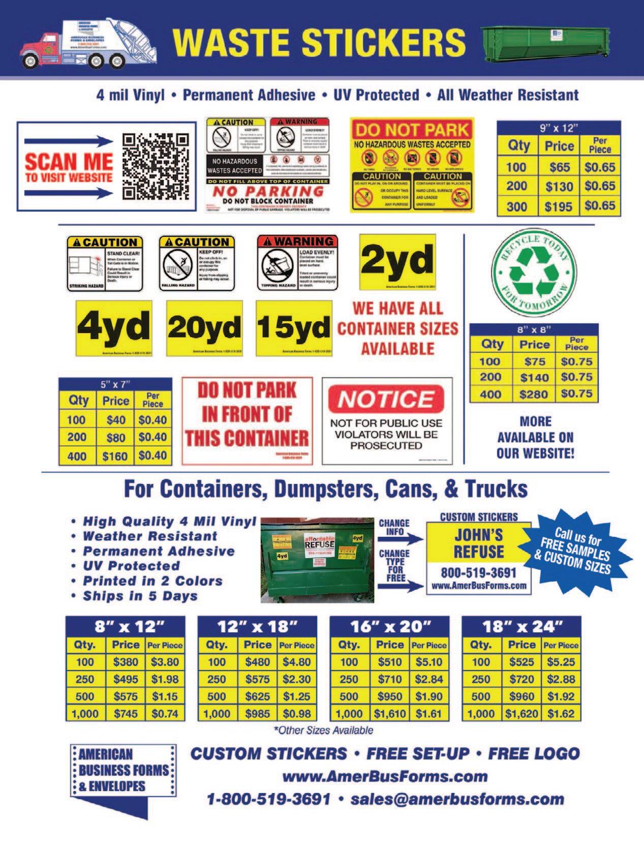 144 www.thehauler.com 1-800-220-6029 A & M Transport ..............................47 ABC Leasing & Financing 92 Aero Industries ................................78 Allegiance 107 Allegiance Trucks ..........................87 Alliance Hauling Inc 114 American Business Forms & Envelopes 97 Ampliroll Hooklifts-Marrel Corp 48 Archworks Capital 17 Armor Equipment 52 Art Advertising Labels and Printing 112 ATR Transmission Inc 94 Barbara Hunter 141 Barker Products 114 Baskin Truck Sales, LLC 96 Bell Auto Sales 140 Benlee Trailers 117 BMO Transportation Finance 41 Bob’s Trucking 141 Bond Equipment Co Inc 91 Boone Trucking Inc 134 BOX GANG Manufacturing 94 Bristol's Trash & Recycling 139 Bucks Fabricating/Div Of Deist 19 C&C Sanitation Inc 140 Cap Oil 536 Capital City Truck Sales LLC 132-133 Coleman Tool & Mfg. Corp. 76-77 Commerce Truck & Equipment Sales 71 Concrete Washout Systems, Inc. 44 Conshohocken Steel Products 114 Constable Sanitation 138 Coopersburg & Liberty Kenworth 121 Cortese Disposal 137 Cowboy Truck and Equipment 120 Curbside Waste Inc 140 Curbtender Inc 72 Custom Truck One Source 32-33 D-Lux Screen Printing Inc 68 Delaware Valley Container Repair 17 Diamondback Products, Inc ..........106 Dickson Equipment Co. Inc 34 Discount Hydraulic Hose ..............111 E Z Tippers 110 Elliott Equipment Co. ................58-59 Emerson Manufacturing 18 Endura Mfg. Co. Ltd. ........................70 Estes Hauling Service 134 Fab-Tex 140 Flag City Truck & Eq Inc 11, 92 Flaming River Industries 88 Franzen Gravity Locks 138 Friesen’s Welding & Manf. 109 Galluzzo Brothers 104 Carting & Recycling 104 George M Comas Inc 138 GH Manufacturing 64 Great Lakes Mfg 49 Gregory Container 69 Hacker's Packers 111 Hallco Industries 65 Hansen Auction Group 74 Hartzell Insurance 131 Hauler Advertisers Exhibiting at Waste Expo ......................124-129 Heavy Haulers 18 Heritage Truck equipment 31 Highball Fabricators 47 Holtz Industries ......................FC-11 Home Builders Services HBS TRASH 107 HQ Dumpsters & Recycling LLC 135 Hydraulic Solutions And Supplies LLC 123 Impact Environmental Group 13, 62-63 Interstate 21-23 J & A Waste Corp. 138 JBOX, Inc 20 JJS Service 140 Kann Manufacturing 115 Key Commercial 25 Kilburg Equipment LLC 99 Koenig & Sons Equipment ............107 L & S Truck Center 138 Lake Region Trailers ......................102 Lakeside Recycling Inc 141 linkLogiq ........................................30 LKQ Heavy Truck 92 Loadmaster ....................................14 MAC Corp/Hobbs Equipment 89 MAC Trailer Enterprises Inc 88 Mercury Paint Corp 90 Mobile Container Service 26 Municipal Equipment, Inc. 118-119 Northeast Industrial Mfg 25 Northeast Truck Sales 57 Nucor 20 Nuss Truck & Equipment 104 Olympic Sales 136 PAC- TECH 24 Paine’s Inc. 139 Par-Kan Company 75 Parris Holdings DBA Parris Truck Sales ............50-51, BC Pelican Waste & Debris LLC 108 Perkins Manufacturing Co 61 Pinnacle Heavy Duty 67 Prairie Truck Sales 46 Premier Truck Sales & Rental Inc 28-29 Prince Motors, Inc. 36-37 Pro Disposal Service 105 Pro-Tainer Inc. 65 Qualpay 35, 120 Qwik-Tip, Inc. 38 Rantoul 66 RDK Truck Sales & Service 79-85 Refuse Equipment & Truck Services 135 Refuse Rental Specialist 43 Refuse Supply 95 Reliance Truck and Equipment, LLC 102 Roeda 16 Roll Offs USA 146-147 Roll-Off Parts.com ..........................40 RRL Insurance Agency 73 Rubicon 70 Safefleet /Roll-Rite LLC 60 Salandro Equipment Sales 25 Sarchione Ford 112 Schuyler Rubber Company, Inc 56 Sebright Products ..........................54 Serio-Us Lock ................................87 Shur-Co 42 Smith Truck Body 27 Snyder Industries 143 Solari Brothers Carting 139 Sparkling Bins 110 Specialty Printing 139 Sterner Consulting 87 Sutera USA, LLC 15 SwapLoader U.S.A., Ltd./ EFCO 98 Sweitzer Waste 137 Switch-N-Go ..................................86 TB Industries ..................................45 The Cart Guy LLC 104 The Permite Corp 120, 145 Thompson Fabricating Inc. 49 Tom Andrus Truck & Equipment 107 Tom's Truck Sales 100-101 TransEdge 74 Trash Masters 140 Trash Truck Rentals 55 Triple V Equipment 122 Truck Center Companies ..............109 Truck Country..................................89 Truck Site ........................................39 Trucks & Parts 103 Twin City Sanitation 89 UnderCDL 93 Valley Enterprise Container, Inc. 56 Vogel Disposal Service Inc 135 Waste Expo VIP Pass 130 Waymund Group Inc 139 WB Waste 54 Wilkens Ind 12 Winter Equipment Corp. ................113 Zan's Refuse Service Inc 136 The Hauler Magazine is published monthly and is mailed free of charge to qualified waste indutry professionals throughout the United States and Canada. The Hauler Magazine takes no responsibility for the accuracy of the informaton or claims of any advertiser in this publication. The advertiser is solely responsible for the information, statements, claims or warranties mentioned in their advertisement. Reproduction of, or use without written permission of the publisher, of editorial, pictorial or design content of any manner is strictly prohibited. visit www.thehauler.com for more information! NO FILLER NO FLUFF WE JUST SELL YOUR STUFF! WASTE EXPO ADVERTISER INDEX - APRIL 2024