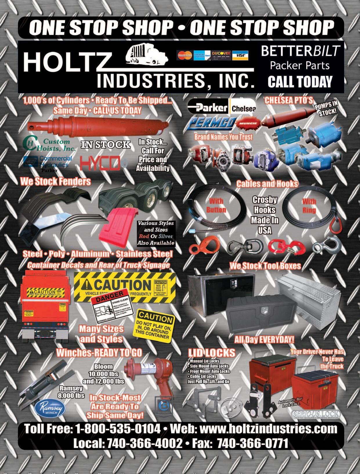108 www.thehauler.com 1-800-220-6029 2014 KENWORTH T370 w/Swaploader SL-185 Hooklift, 325HP Cummins Engine, Allison Automatic Trans., 207K miles, 10K Hours, Adjustable JID to do 36” or 54”Boxes, Pioneer Tarper, Air Ride Susp., 33,000 GVW, Air, cruise, PWR Windows, Eng. Brake, Diff Lock. $85,000 OBO • CALL Robbie 814-735-4589 2005 IH WITH LEACH 2RIII Winch and Cart Lifter Also available 2, 6 & 8 Yard Rear Load Containers Call Calvin • 678-516-2165 $42,900 obo Engine, Mack 12.0L 380 HP, Eaton RTX 16709B 9spd, Rear, Eaton 23109 3.90 Ratio W/AirTag Axel, AmpliRoll AL100-16 20,000 lbs, Roll Rite s/n 5109, New Steer tires, new breaks, new clutch & surfaced flywheel, Very good condition and ready to work. 2006 Mack CHN 612 CONTAINERS WASTEQUIP (6) 20 yard containers (5) 10 yard containers (1) flat rack. All containers are in excellent condition and ready for use Truck & Containers together $105,000.00 OBO Truck only $59500.00 OBO Containers only $48,000.00 firm Tom Toy • 715-579-0123 • email: ttoy1622@gmail.com INTERNATIONAL w/Palfinger 20,000lbs. 36-54 adjustable Hook Turn Key, 33k GVW, Auto Tarp, Automatic Alison Transmission, 207K miles. $57,999 • 203-913-5083