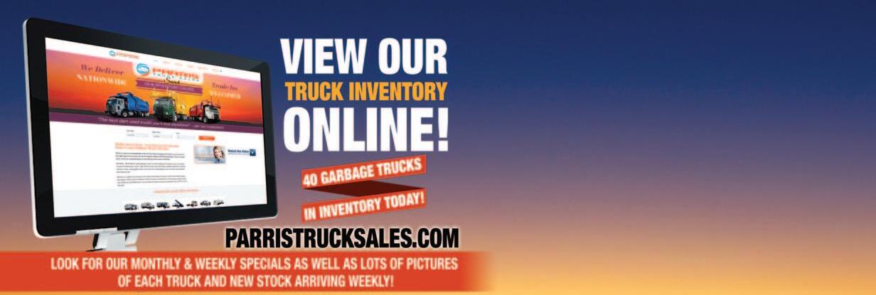 1-800-220-6029 www.thehauler.com 109 Questions? Call 740.732.4014 • Email: Buckeydisposal@aol.com 2007 HEIL 5000 25 YD Great shape. Run great. Only reason for selling is repurposed the truck. $15,000 obo loaded on your truck or trailer. 2010 HEIL RETRIEVER 10 YD SL Side cart tipper included. Ran great. Only reason of getting rid of is we upgraded to a rear load body. Paid 50k new in 2010. $15,000 obo loaded on your truck or trailer 2012 Mack McNeilus Single Bin LEU600 46,258 miles $49,400 631-484-1447 2015 Mack McNeilus Dual Bin Body with 46,854 miles. $58,600 2002 KENWORTH T300 Body is a 2012 Heil PT1000, 8 yard. Caterpillar 3126 and automatic Allison trans. Like new tires. Solid running truck. Professionally maintained. $36,000 obo Truck is bulletproof and fires right up every time! 919-810-5800 2012 MACK GRANITE GU813 PRICE $137,0000 Tri axle, MP7 10.9L, Eaton 8LL, 60,000lb Roll-off USA cable hoist, Pioneer Auto Tarper. Well maintained, clean truck. 2010 MACK GRANITE GU713 PRICE $107,000 Tri axle, MP7 10.9L Pre SCR, Maxitorque ES 10 Spd, 60,000lb Galbreath cable hoist, Pioneer Auto Tarper. Solid truck that runs great. Call or text Thomas 443-398-1107 or email tsisk@etsmd.com Trucks are in Maryland FOR SALE BODY ONLY Heil Half Pack Front Loader Compactor Body. Only in service for 5 months of use. $75,000 • CALL STEVE 763-220-5152