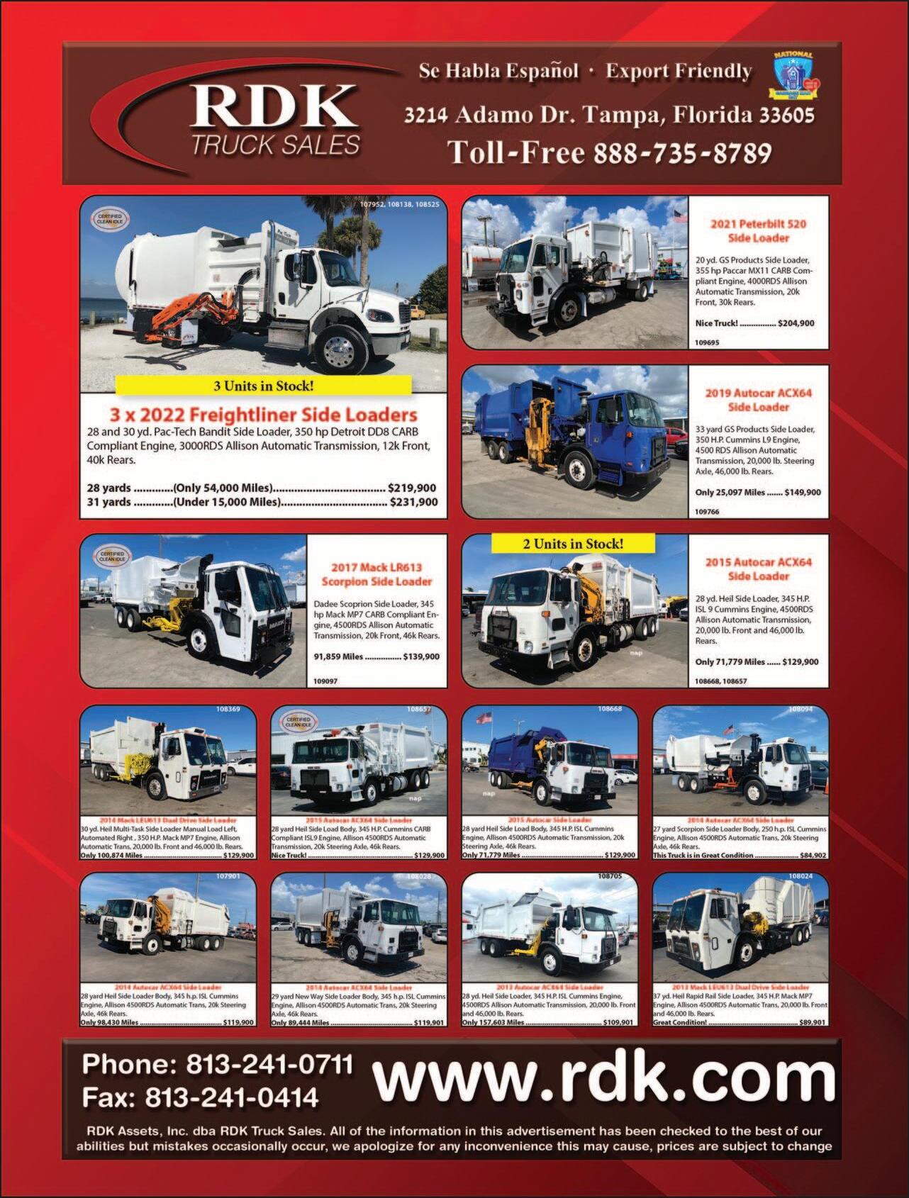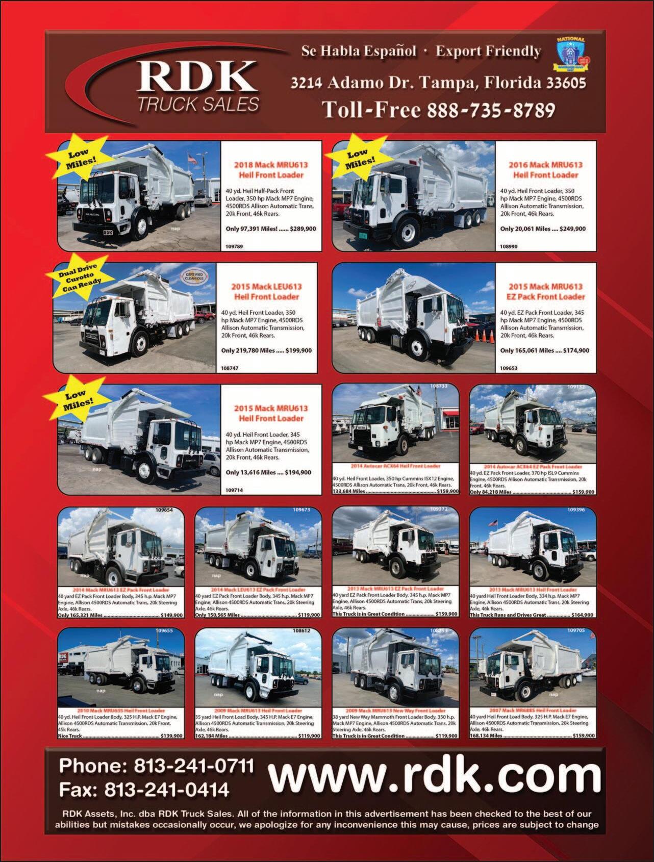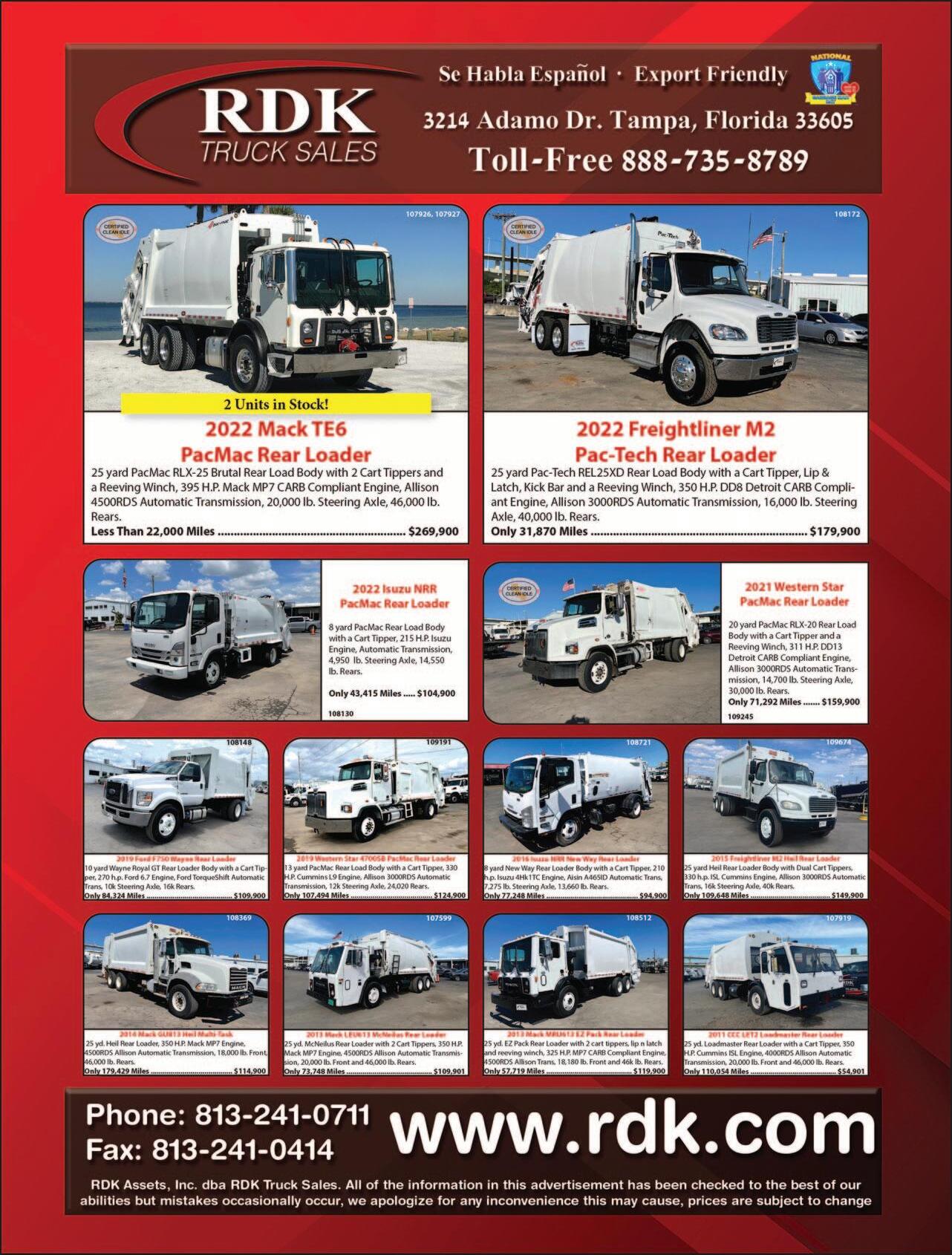 6.7 Cummins Engine, Alison Transmission, 20 Yard Pak Mor Bed, 2 Cart Tippers, New Tires and brakes, A/C, 111,000 Miles, 12000 Hrs ROUTE READY $55,000