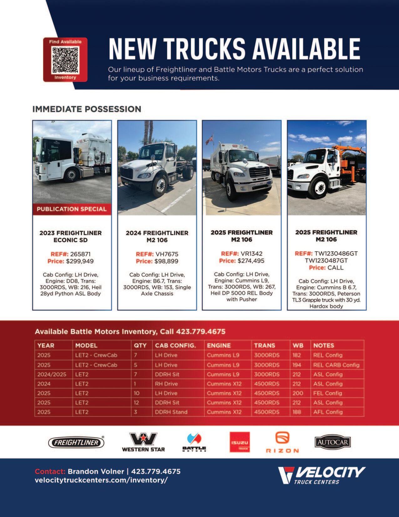 READY NOW (3) 2024 BATTLE MOTORS, 350 Cummins, Allison 4500RDS, 31 yd Curbtender PowerPak