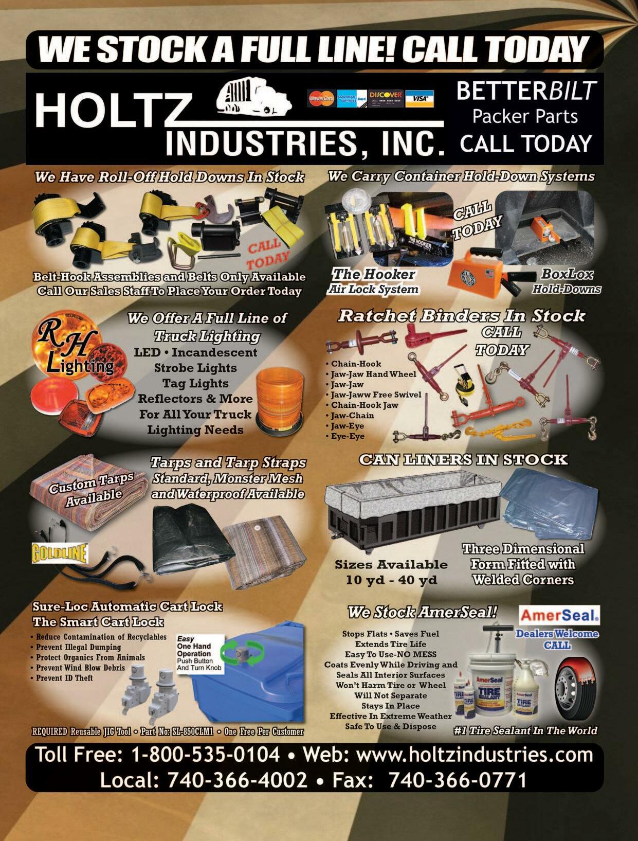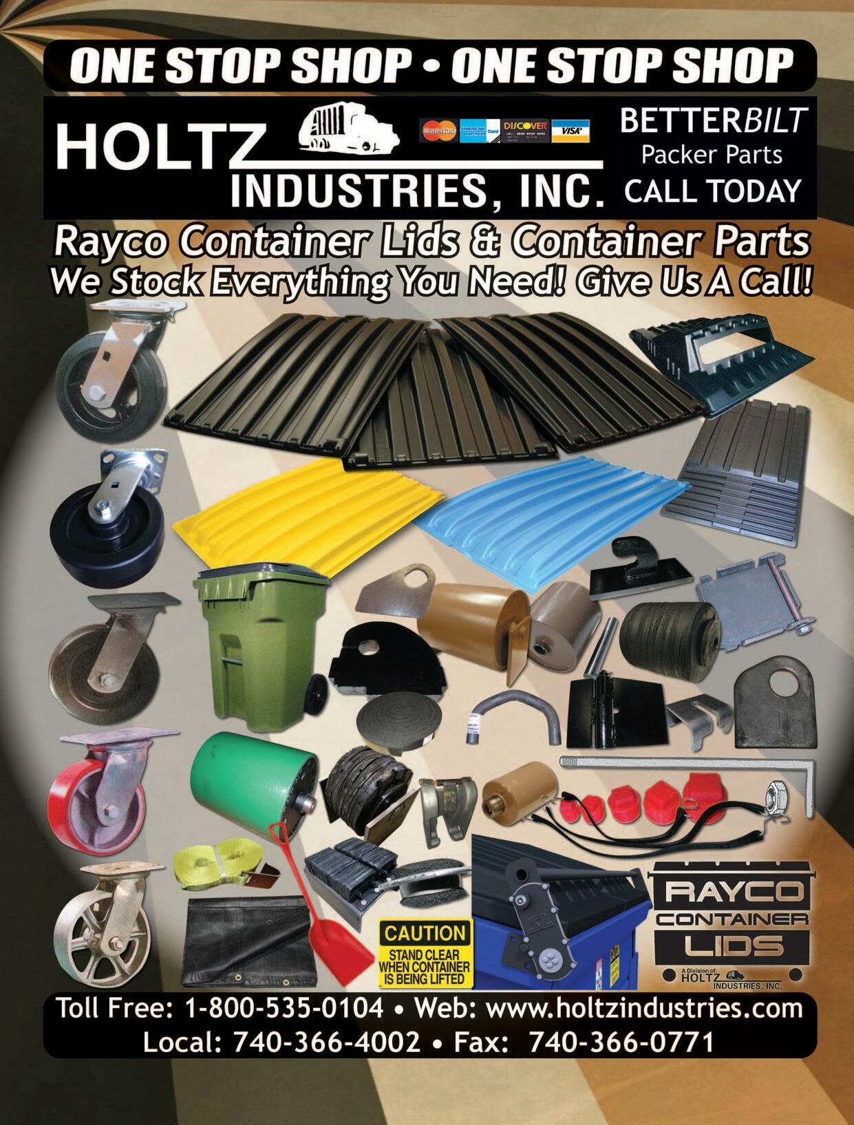 online @ www.holtzindustries.com and click on “TRUCKS FOR SALE” to view all our IN STOCK TRUCKS! Or give RAYMOND HOLTZ a call at extension 235 for more information! It’s simple…we are your ONE STOP SHOPPING SUPERSTORE-don’t WASTE your time calling elsewhere. WE WILL GET YOU BACK ON YOUR ROUTE IN NO TIME! Thank You To All Of Our Dedicated Customers and Vendors! Holtz Industries, Inc. • 1-800-535-0104 • www.holtzindustries.com See Our Ad on Page 76!