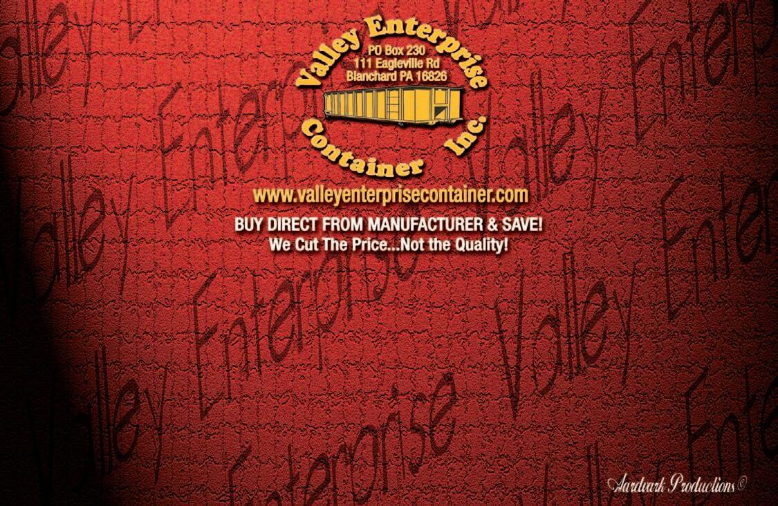 98 www.thehauler.com 1-800-220-6029 ROLL-OFFS • FLATBEDS HOOK LIFTS • CUSTOM FABRICATION Call Daniel or Hannah for A Quote Today! 570.523.3580 Lewisburg, PA 17837 • Fax: 570-524-0099 • www.friesenswelding.com • Email: sales@friesenswelding.com