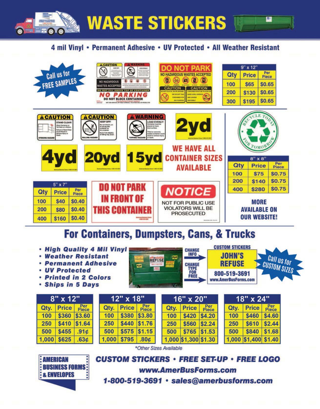 54 www.thehauler.com 1-800-220-6029 COMPACTOR RECEIVER BOXES OPEN TOP CABLE ROLL-OFFS 10-70 Yards FLAT BEDS & SUBFRAMES BUILT TO YOUR SPECS. REAR LOAD CONTAINERS 1 through 8 yard IN STOCK WE MANUFACTURE ALL STYLES OF HOOKLIFT CONTAINERS TUB CONTAINERS RECYCLING CONTAINERS FRONT LOAD CONTAINERS n ALL our CONTAINERS are PRIMED and PAINTED Inside and Out. n SEAMS are WELDED SOLID. n SPECIAL ATTENTION is given to all High-stress and High-wear Areas. n CUSTOM ITEMS built to your specs at REASONABLE PRICES. n DELIVERY AVAILABLE for Large or Small quantities at reasonable rates. 888-995-8199 570-962-2194 CALL 24 HOURS A DAY!