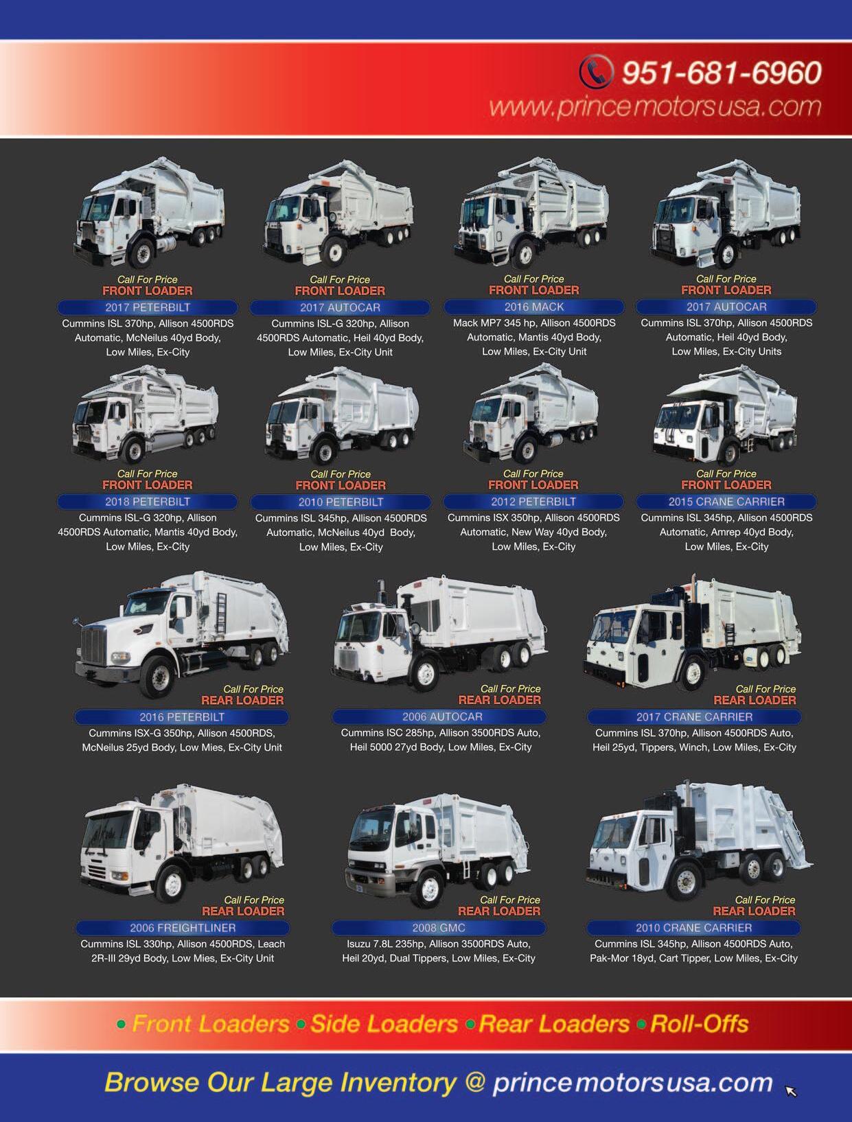 With a large inventory of waste and recycling collection vehicles including non-CDL and CDL single compartment and splitbody rearload packers from 11-32 yd, automated side loaders, front loaders, roll off trucks and more.
