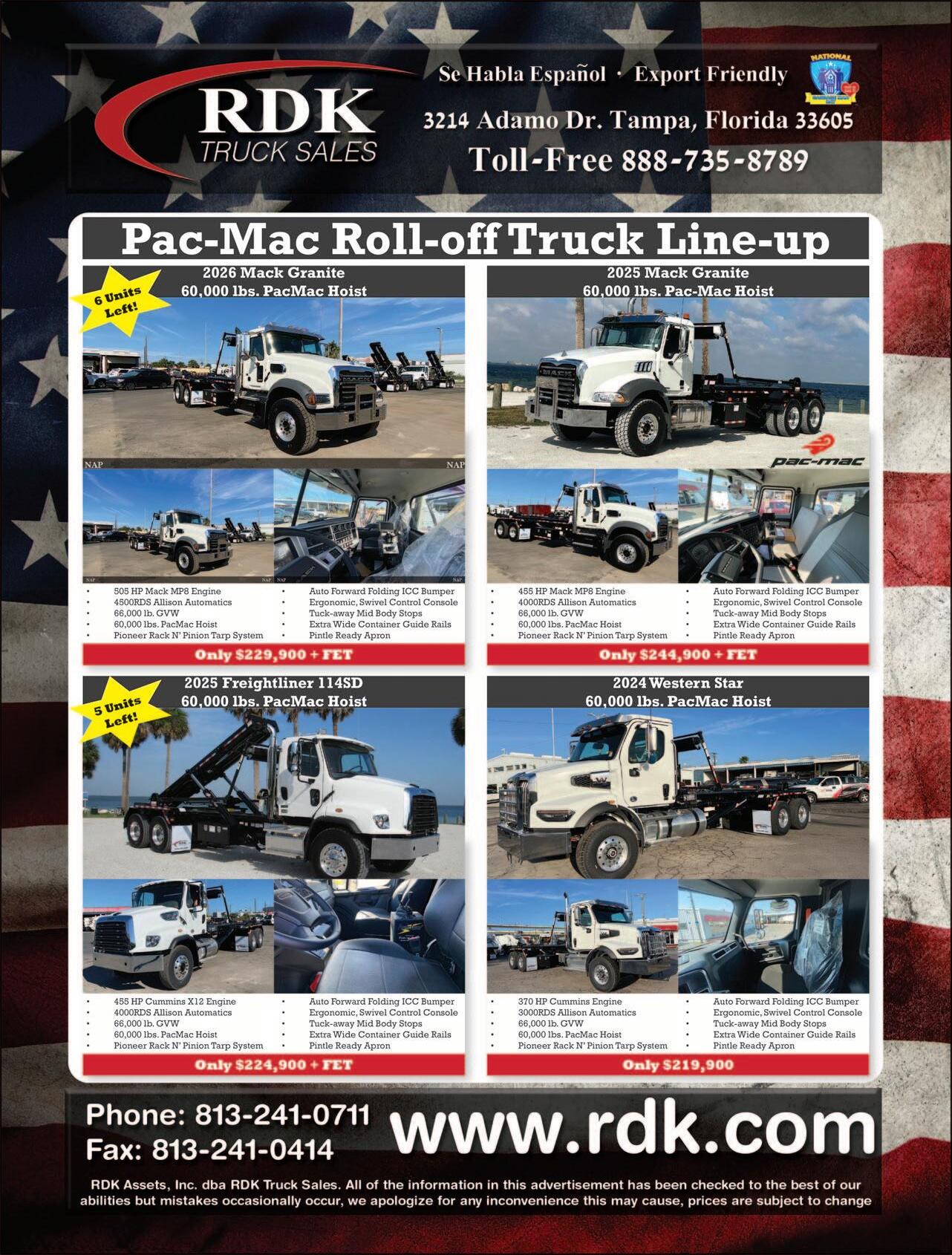 Cummins L9, Allison 3500RDS, 10K front axle with 12K springs, 23K rear with 30K springs, locking diff, 20 yd New Way Cobra with reeving cylinder, choice of tailgate options
