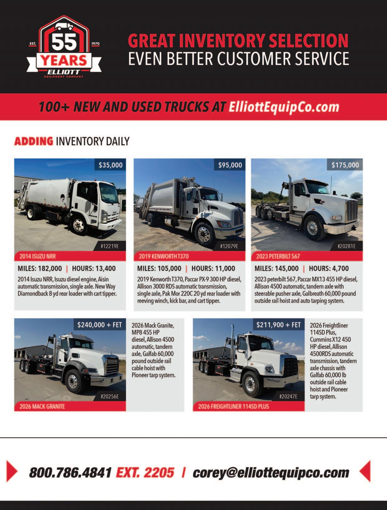 With a large inventory of waste and recycling collection vehicles including non-CDL and CDL single compartment and splitbody rearload packers from 11-32 yd, automated side loaders, front loaders, roll off trucks and more.