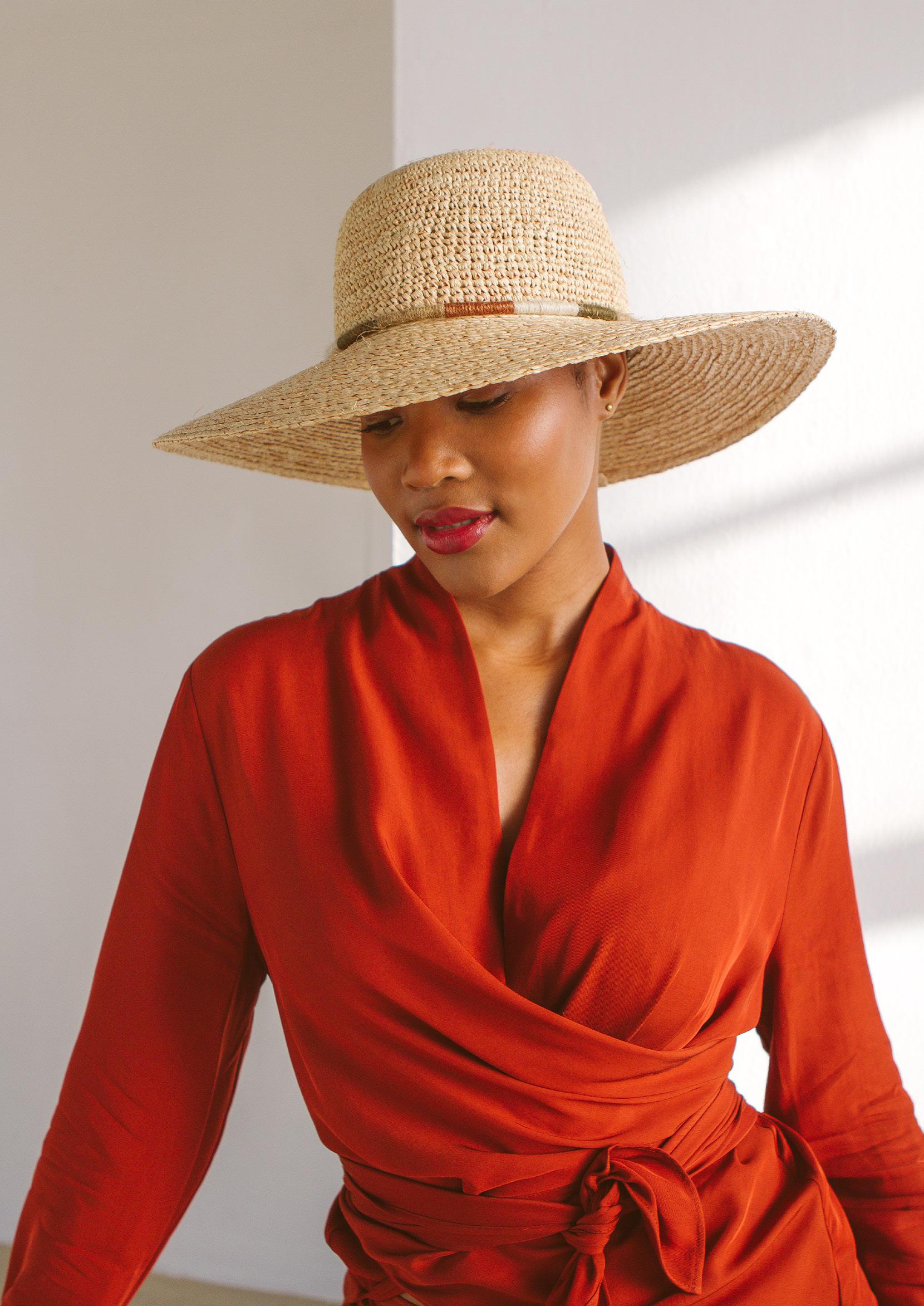 Premium quality raffia sourced from Madagascar. Crafted by hand, the natural raffia fibres are handwoven or crocheted by skilled artisans to form the hat