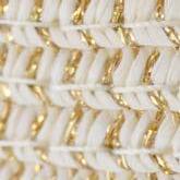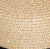 Schilf und Gräser aus biologischem Anbau, geerntet und gefärbt, bevor sie zu einem Geflecht gewebt werden. Mehrere Zöpfe aus dieser Naturfaser werden zu einem Hut zusammengenäht