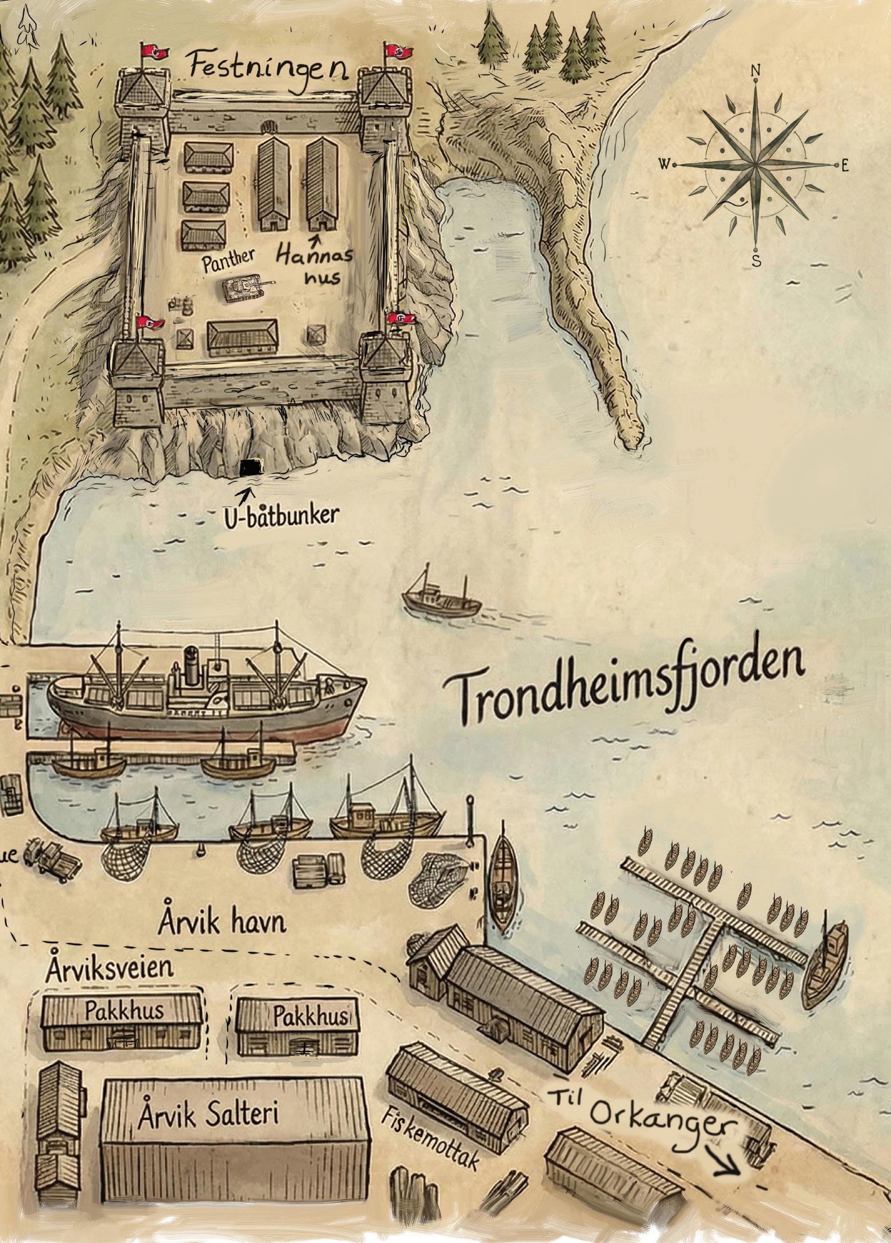Hanna nikket. «Papa bygger stor bunker i berget under festningen. Ubåtene kan være trygge der og fylle bensin, hente mat. Fanger fra Trondheim har kommet for å bygge enda raskere, jøder og sånn.»