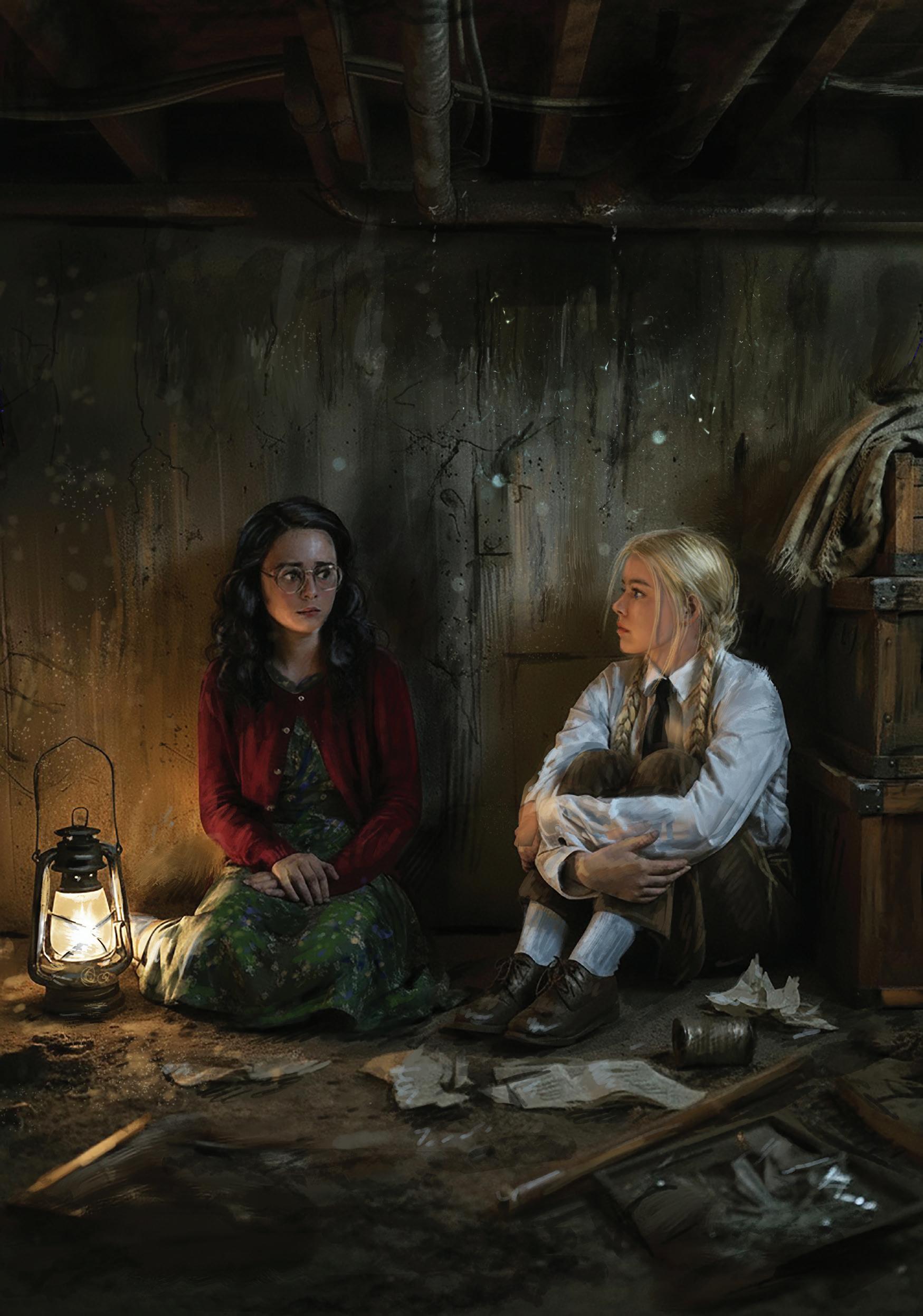 Det stinket alltid i kjelleren, og den var fuktig og kald. Noen gamle, ødelagte pulter og stoler lå hulter til bulter, sammen med annet søppel. Ellers var det stablet kasser langs den ene veggen, med hermetikk, vann og varme pledd. I tilfelle de måtte være der lenge.