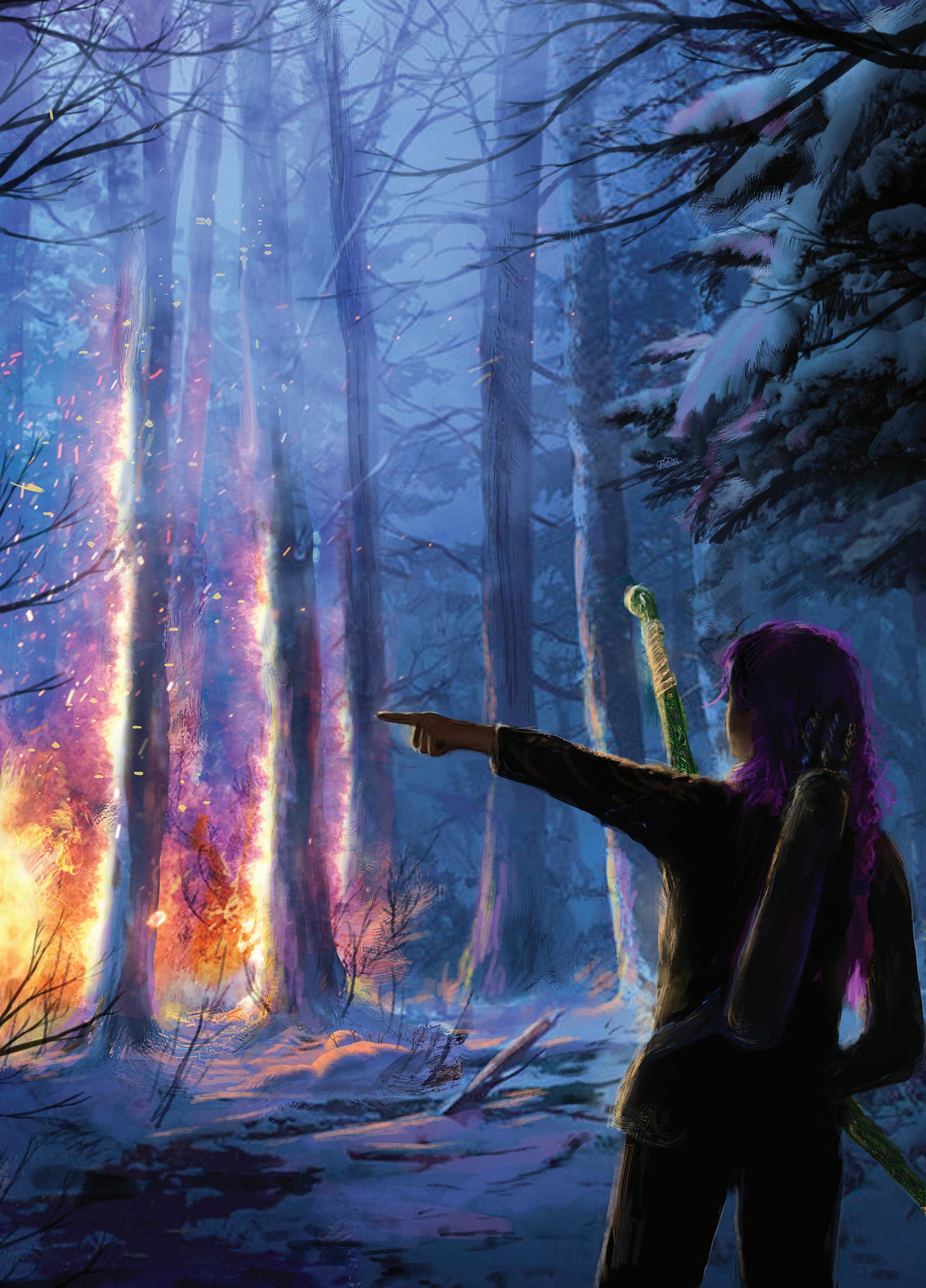 «Det er kaldt her», sa Tara og stampet med beina i den frosne bakken. Hun speidet mellom trærne mens hun la ei pil klar på strengen til den magiske buen.