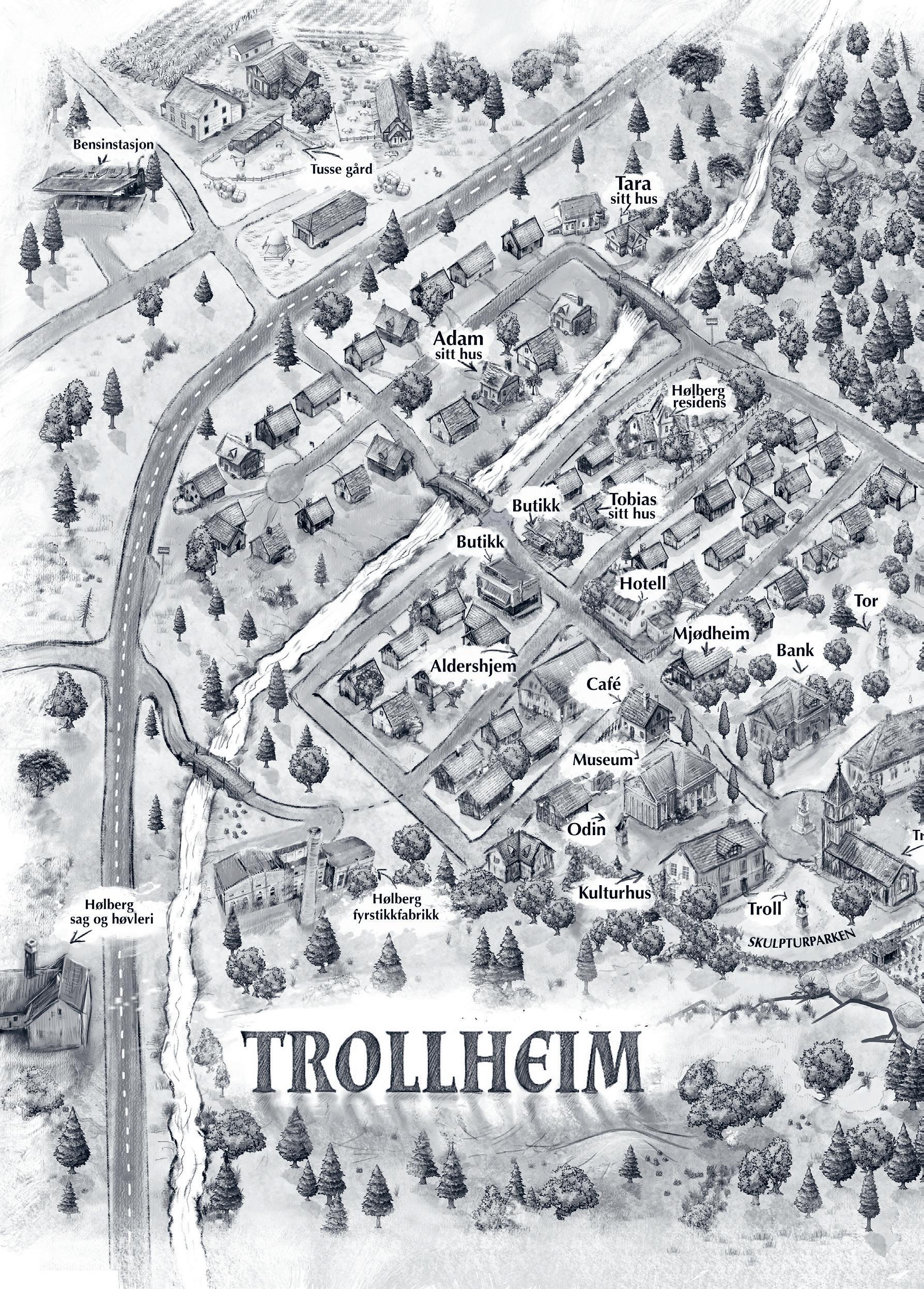 «Det er pent», sa Tara og la det rundt halsen. «Vær forsiktig på vei hjem», sa Adam. «Jeg synes jeg har sett små skygger i øyekroken de siste par ukene. Det kan være spioner fra Helheim på ferde.»
