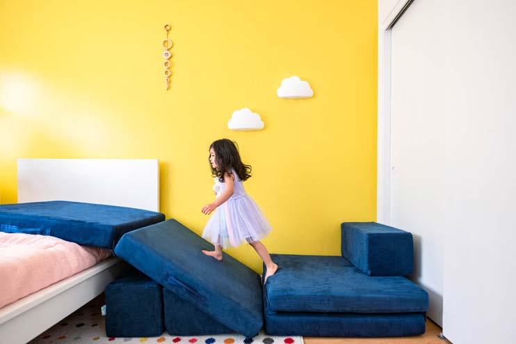 Connect two Figgy cushions and set them up to make a partition. Have your child hide behind the cushions and use their hands, sock puppets, or toys to put on a puppet show.