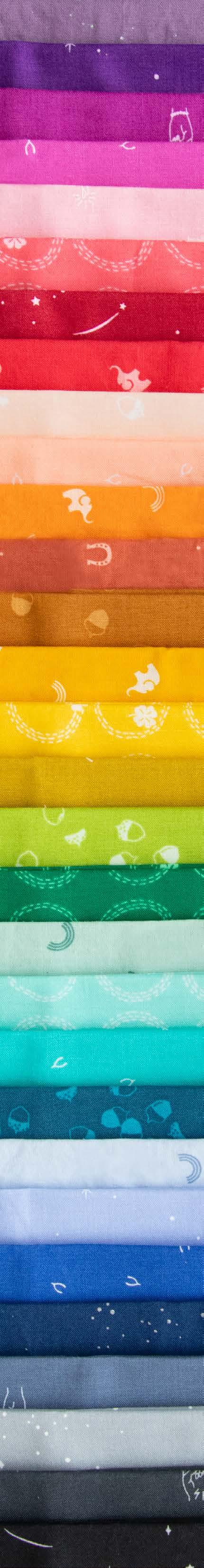 Entire Collection 40 Cotton pcs Lucky Charms by Ghazal Razavi of FIGO Studio offers all the luck you need in 40 colors! This ongoing basic is offered in 7 lucky prints that we all use to keep luck on our side. When adding basics to your next project choose between shooting stars, fingers crossed, wishbones, four leaf clovers, acorns, horseshoes, and elephants. Get lucky and add some FIGO charm to your shop!