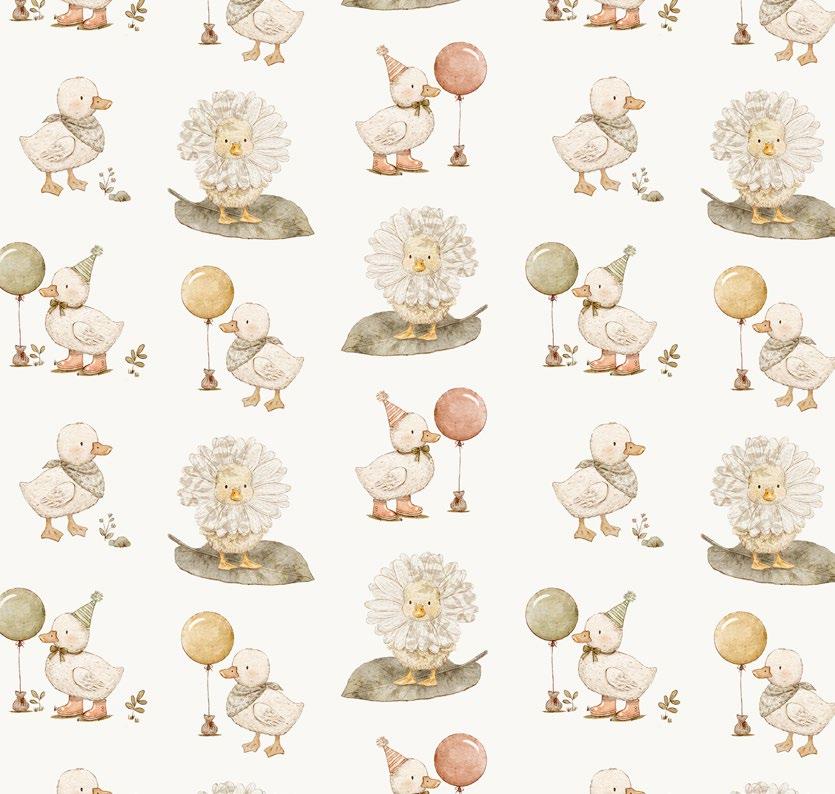 Soft and whimsical, Tiny Waddles is a charming fabric collection designed for little ones, featuring a soothing palette of warm neutrals. At its heart, playful ducklings embark on tiny adventures, complemented by delicate florals, hand-drawn ducks, soft polka dots, and classic stripes. Thoughtfully crafted with a nostalgic, storybook feel, this collection brings warmth and charm to children’s clothing, bedding, and decor.