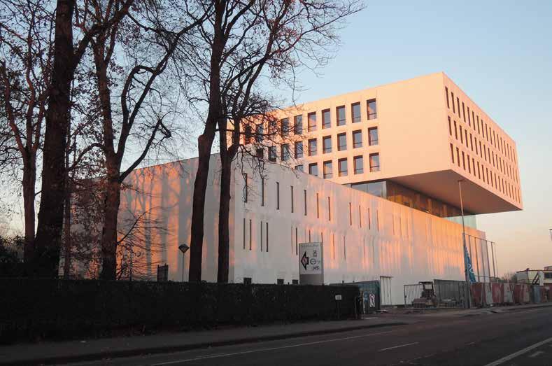 Sinds het begin van dit academiejaar is de nieuwe campus in de Spoor wegstraat, aan de achterkant van het station van Brugge, de nieuwe thuisstek voor de academische opleidingen industriële wetenschappen (industrieel ingenieur) en revalidatiewetenschappen en kinesitherapie. De opleidingen industrieel ingenieur maakten de overstap vanuit de Technologie campus in Oostende. Een historisch moment: bijna 90 jaar lang heeft de campus in Oostende verschillende gene raties ingenieurs met naam en faam opgeleid. Daar wordt nu definitief een punt achter gezet. De campus in Oostende is niet meer, maar de gedrevenheid en het enthousiasme van het personeel wel. De gerenommeerde naam van Oostende zal in Brugge ongetwijfeld alle eer aange daan worden. De nieuwe KU Leuven campus in Brugge biedt heel wat troeven. De ligging is uitstekend en maakt een vlotte bereik baarheid mogelijk. Het concept met de twee witte bouwvolumes, en de transparante “public layer” heeft een architecturale en eigentijdse uitstraling en de totale oppervlakte van 12500 m2 is optimaal benut wat de functionaliteit alleen maar ten goede komt. De campus beschikt onder meer over 16 grote labo’s, 26 leslokalen, verschillende kantoor ruimtes, een auditorium, een studenten restaurant en een open Eerderleerruimte.al dit jaar, op vrijdag 16 juni 2017, werd het lintje rond deze nieuwe KU Leuven campus, officieel doorgeknipt. Alle gastsprekers waren vol lof over de nieuwe campus en z’n mogelijkheden.