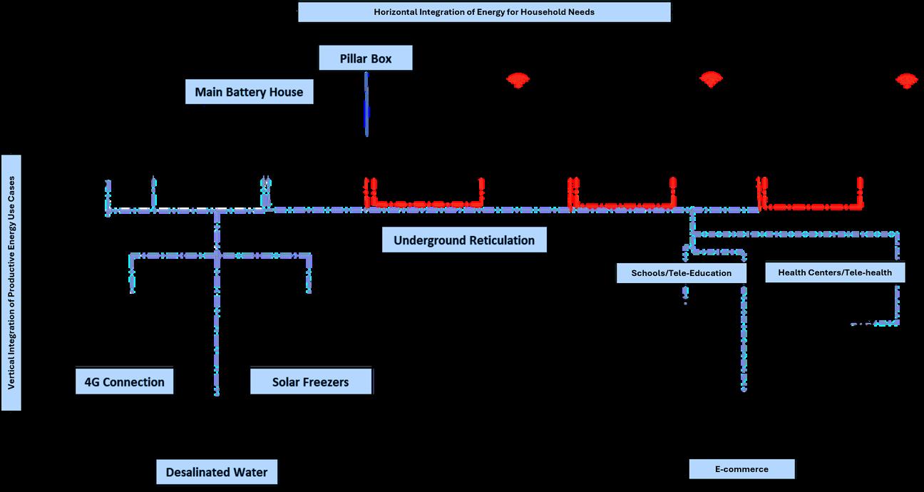 The FREF model aims to provide access to clean, affordable, reliable and resilient forms of energy for unelectrified and intermittent demand rural communities It will de-risk private sector participation in the renewable electrification market and will create a fair and open competitive renewable electrification market that supports sustainable electrification schemes for rural communities. Other auxiliary services, such as desalination plants, solar refrigerators, mobile networks, digital payment solutions, telehealth services, and parametric disaster risk insurance, will be built on top of the mini-grid solution to improve overall standards of living