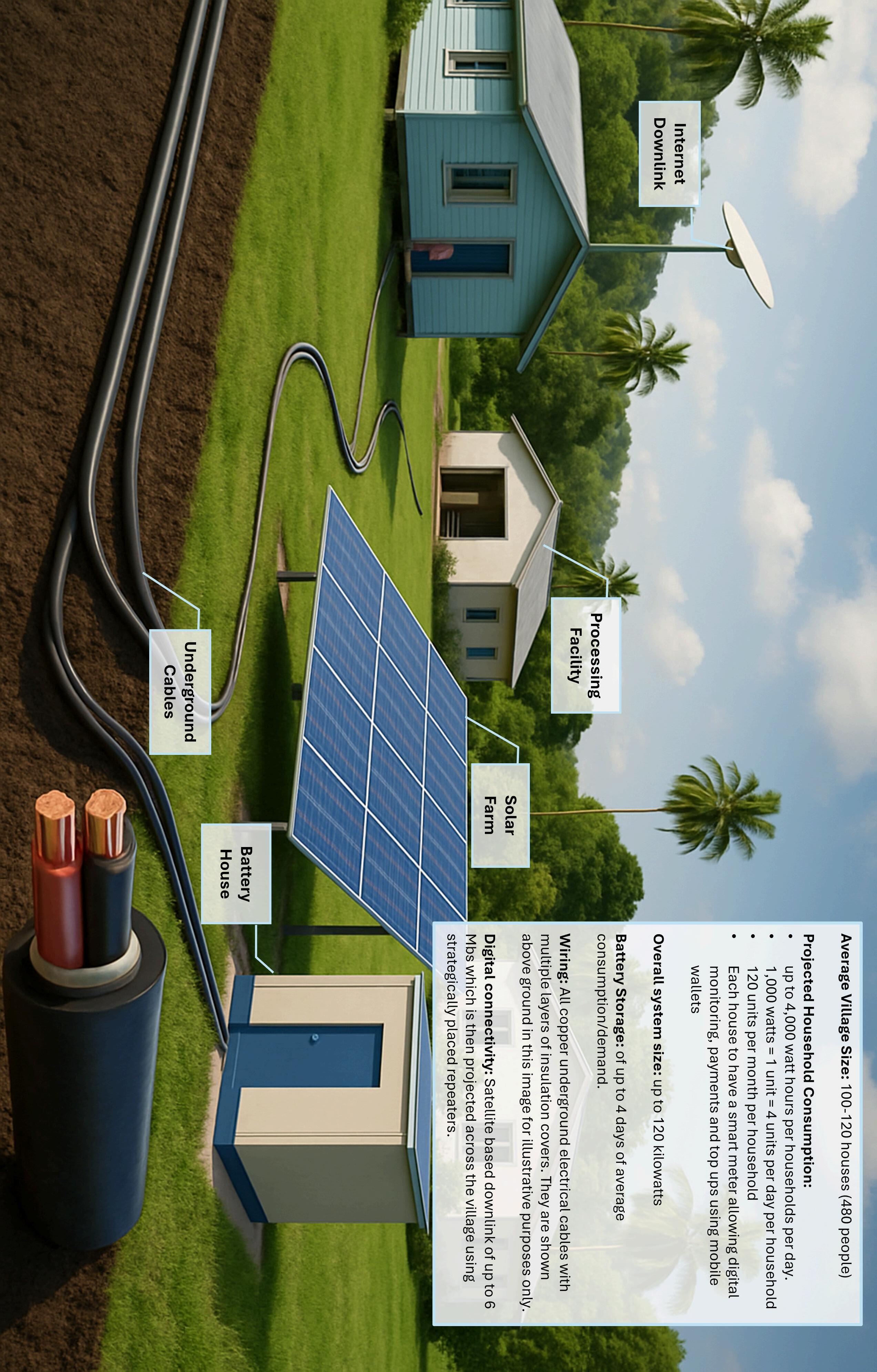FREF uses a horizontal integration model to connect all households in the village to the centralised solar mini-grid using underground cables. Each house has a smart meter, which is used to remotely monitor, bill, and manage electricity usage, enabling seamless integration with mobile wallet solutions