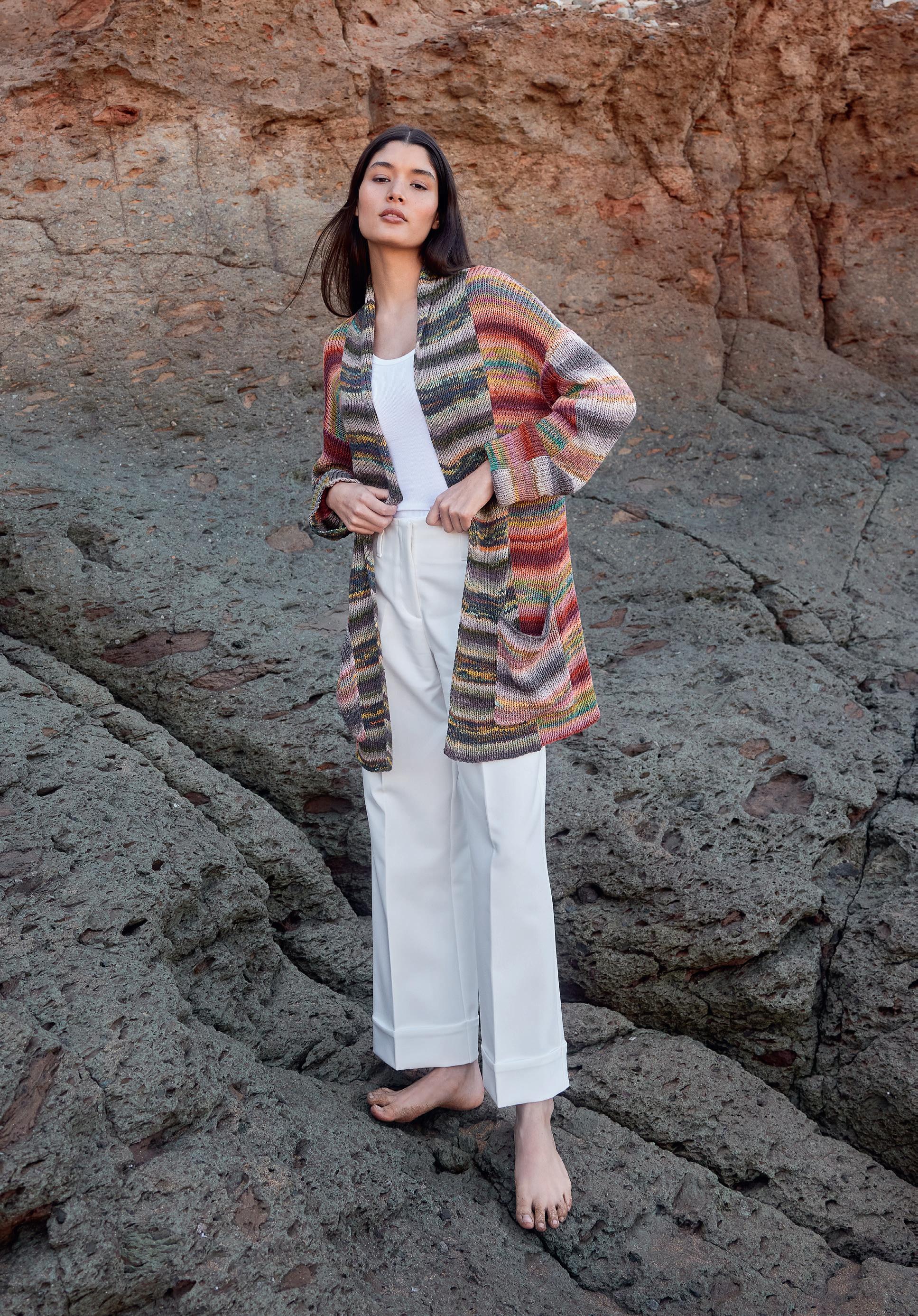 Für Cotonella wurde reine, unmercerisierte PimaBaumwolle zu einem voluminösen Kettengarn verarbeitet. Buttrige Verläufe betonen den ultraweichen Griff der luxuriösen Garnneuheit.