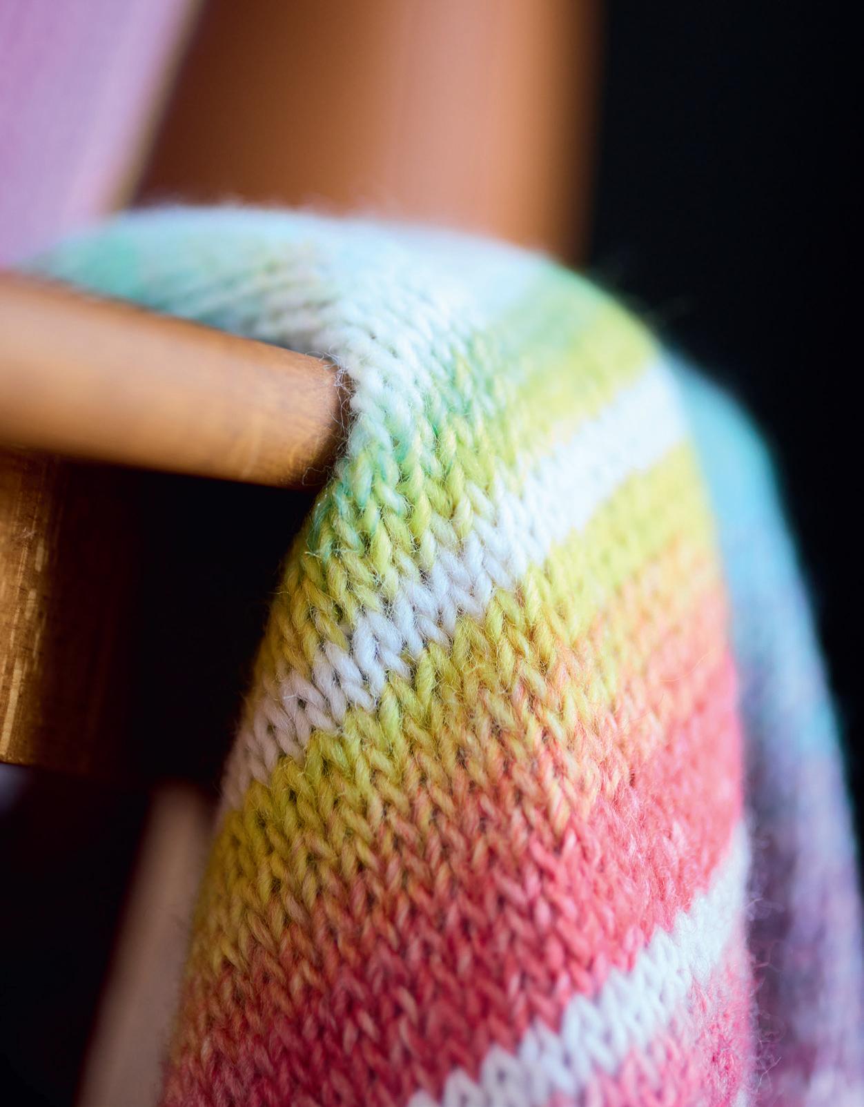 Gegen graue Tage und trübe Stimmung empfehlen wir – neben den bildschönen Verläufen der Gomitolo-Kollektion –satte Beerentöne und lebhafte Streifen aus feinsten Garnmischungen. Ob für Pullover, Mäntel oder Accessoires: Setzen Sie auf die Wirkung von Farbe! Denn sie hellt die Laune nachweislich auf – nicht nur in der dunklen Jahreszeit.