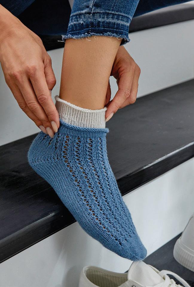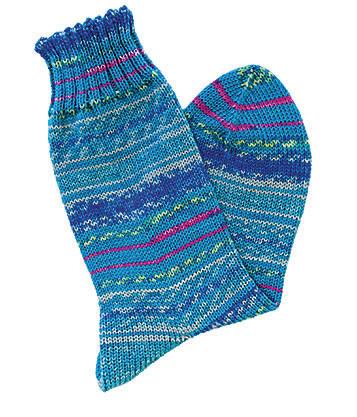 Die Angaben für die Maschenprobe, die auf der Banderole steht, sind lediglich ein Richtwert und basieren auf dem Muster glatt rechts. Damit Ihre Socken perfekt passen, beachten Sie bitte die in der Anleitung Ihres Wunschmodells beschriebene Maschenprobe.