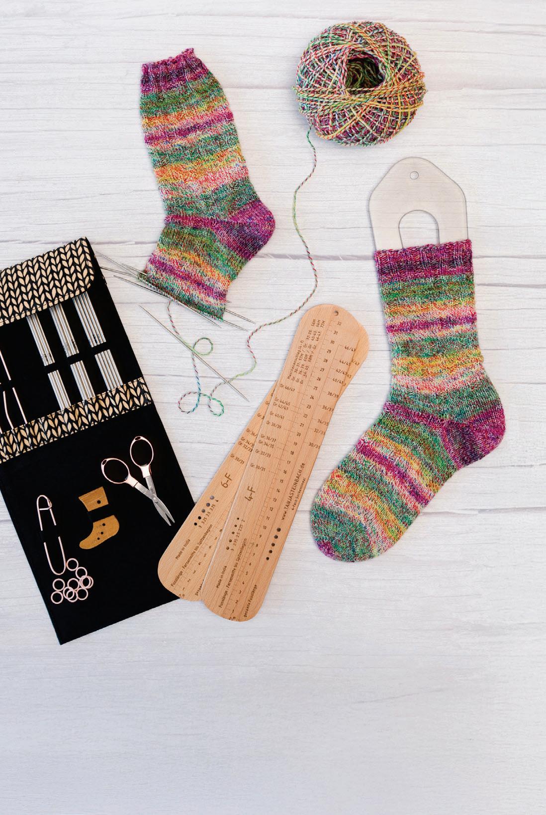 Bei diesem Rundum-Programm kann der Funke der Leidenschaft für das Sockenstricken nur überspringen. Vertrauen Sie mir: Der Anblick einer gut gefüllten Schublade mit selbst gestrickten Socken macht glücklich und stolz!