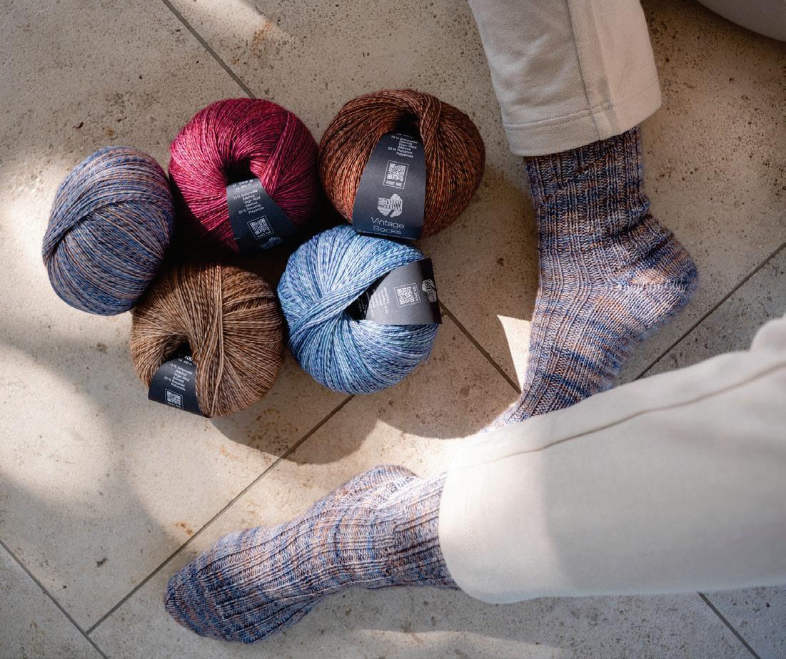 Die Anzahl der Fäden, die miteinander verzwirnt werden, bestimmt die Stärke: Je mehr Fäden, desto dicker ist das Garn. Sie entscheiden, ob Ihre Socken feiner oder eher robust werden sollen. Und können aus einer Vielzahl von Lana Grossa 4-, 6und 8-fach Garnen wählen! Damit es spannend bleibt, kommen dezente Farbakzente ins Spiel: Als feine Tweednoppen oder subtil Ton in Ton bedruckt.
