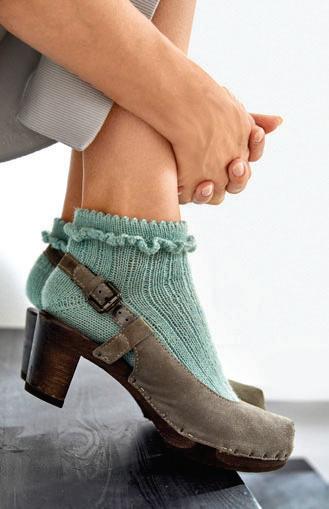 Diese Fersenform garantiert eine optimale Passform bei mittelbreiten Fersenballen und einem hohen Spann (Fußrücken). Den ausführlich bebilderten Step-by-step Lehrgang finden Sie auf Seite 48/49.