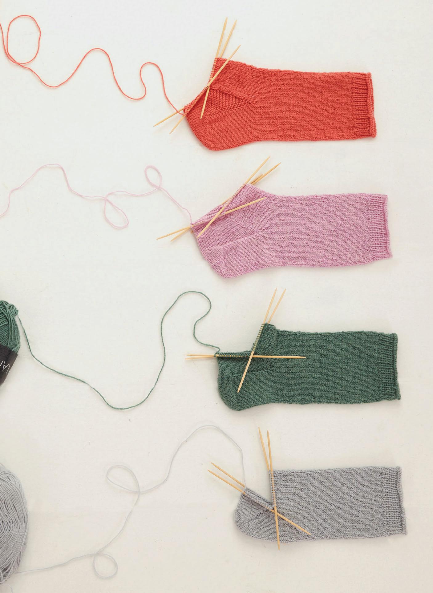 Und damit die Socken am Ende auch richtig gut passen, empfehlen wir Ihnen, eine Maschenprobe anzufertigen Seite 42.