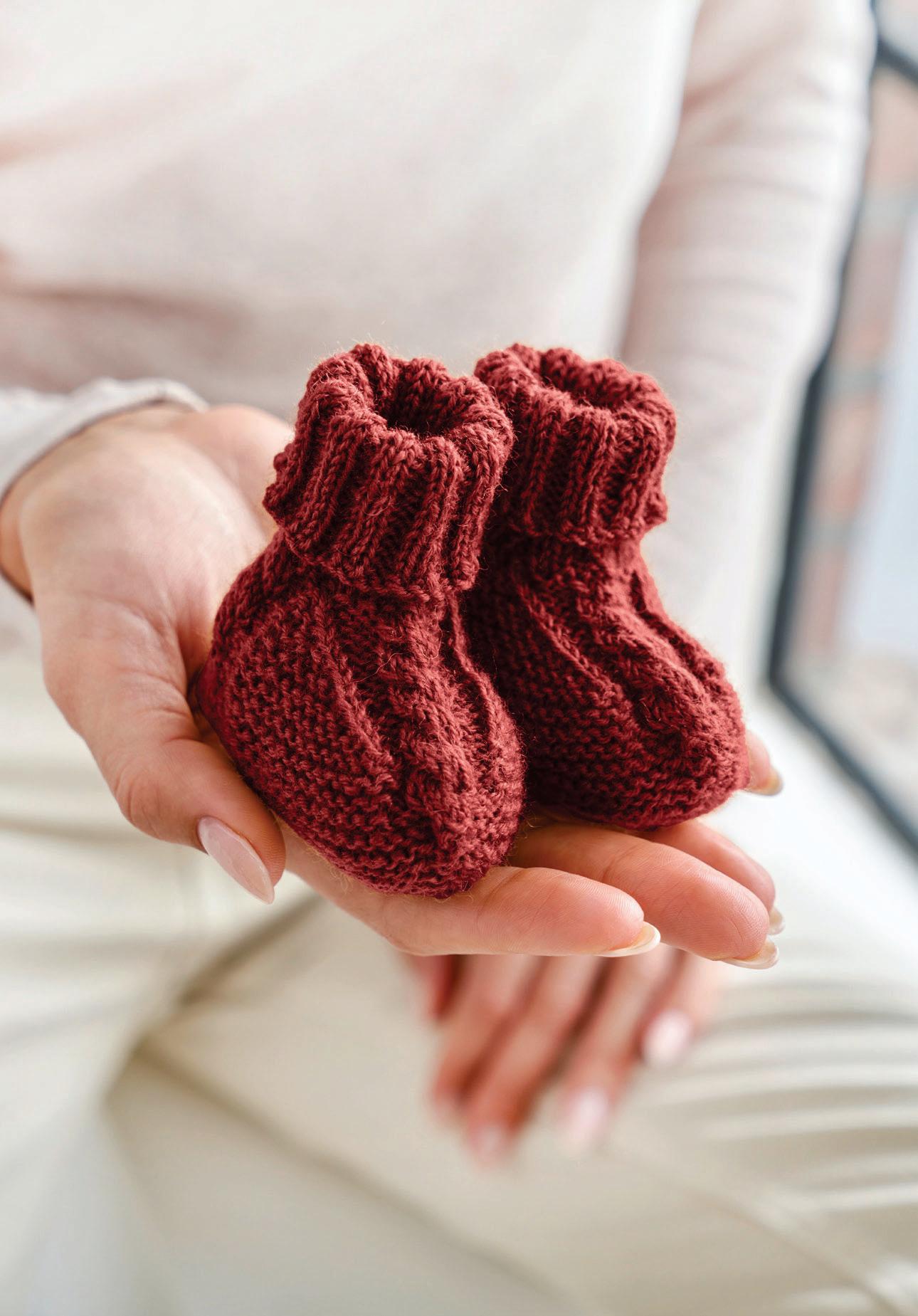 Wie süß! Für die kleinen Mäuse würden wir, die frischgebackenen Mütter und Großmütter, die Tanten, Onkel und Freunde der Eltern, wirklich alles tun – warum also nicht mit dem Stricken eines dieser entzückenden Sockenpaare und Babyschühchen beginnen? Sie sind aus kuscheligen Garnen gestrickt und haben lange Bündchen, die verhindern, dass die Söckchen – schwupps – wieder von den kleinen Füßen rutschen.