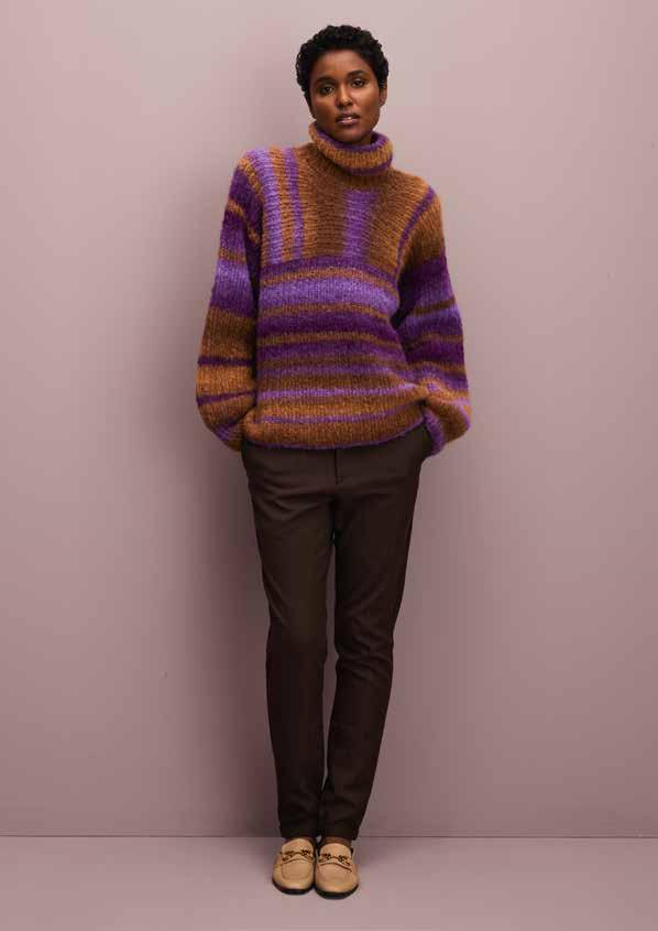 23 - BASTA & COOL MERINO BIG (violet); BASTA & BRIGITTE NO. 2 (pink) Violet ou rose bonbon, nous n’arrivions pas à nous décider. C’est pourquoi le pull (avec bordures en fil contrasté) est présenté dans les deux coloris. Mais vous aurez du mal à vous décider, car le nouveau fil fantaisie propose un total de 22 couleurs au choix.