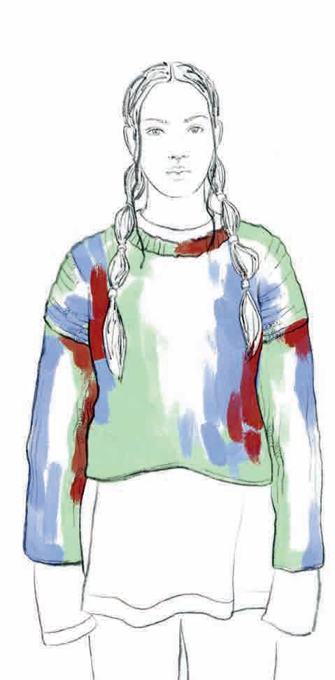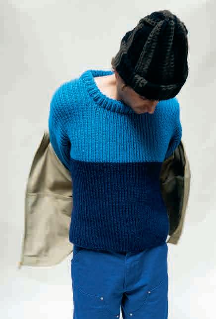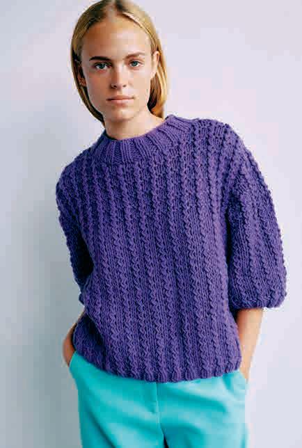 Für die zweifarbige Version: Nach 15 cm = 30 Runden ab Ärmelbeginn die Farbe wechseln.