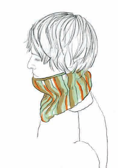 Anleitung: 42 M mit Nd Nr 7 fest anschlagen und im Wickelmuster str. 210 cm ab Anschlag (oder bei gewünschter Länge), nach einer 2. Musterreihe alle M fest abk.
