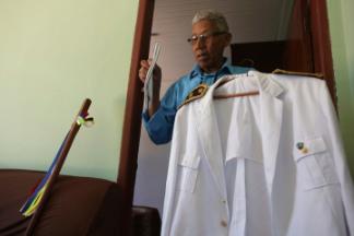 Em Catalão, Capitão Antônio Alves de Lima, Seu Toinzinho (in memoriam), prepara a farda do Congo Santa Terezinha