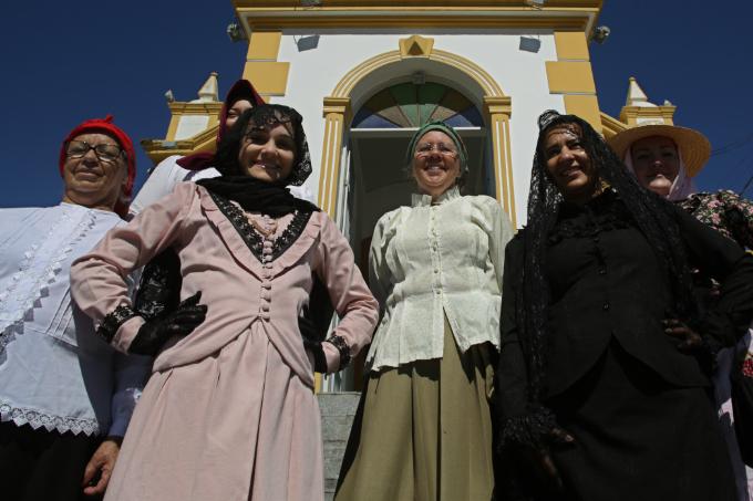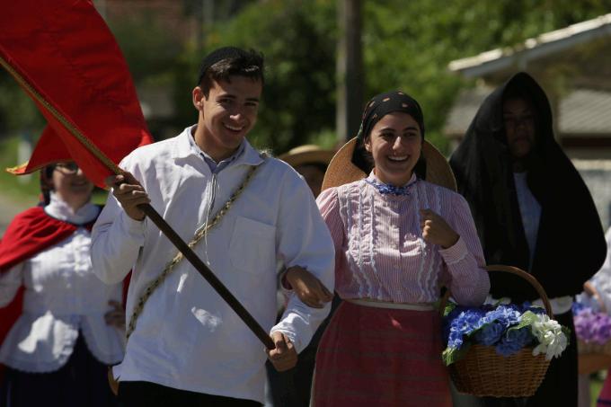 O festival começava com toques de instrumentos ecoando melodias que há séculos embalam os descendentes dos açorianos que povoaram essa costa. Nas ruas, grupos vestidos