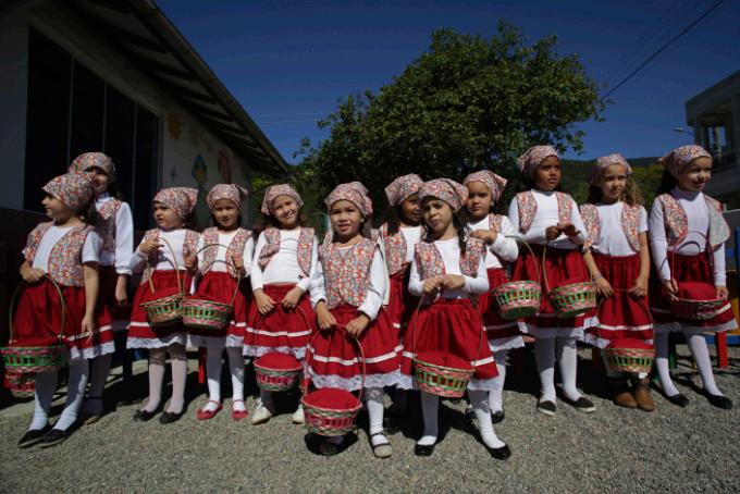 com trajes coloniais desfilavam com orgulho, trazendo à vida as histórias dos primeiros imigrantes que, em meio a tempestades e incertezas, aportaram aqui no século XVIII. Vi idosos com os olhos brilhando ao admirarem seus netos dançarem o pezinho e o balaio, reafirmando que a cultura não é apenas memória, mas continuidade.